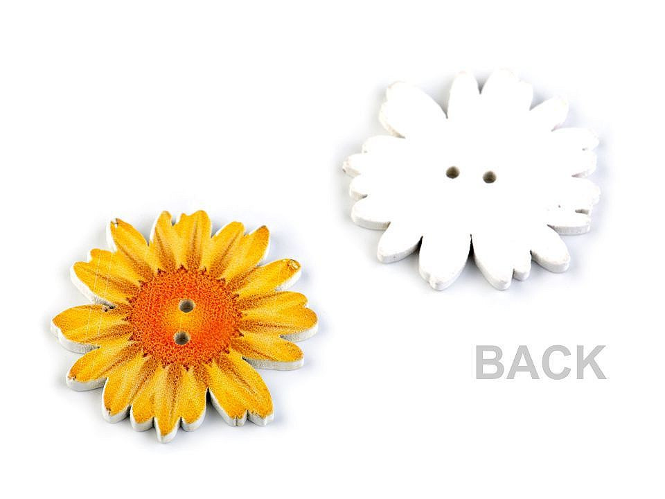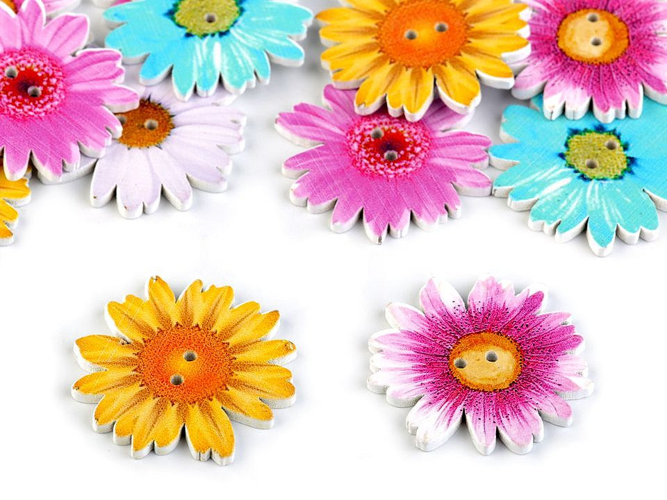Dřevěné dekorační knoflíky ve tvaru květu oceníte při zdobení rámečků, krabiček, pozvánek nebo přáníček.