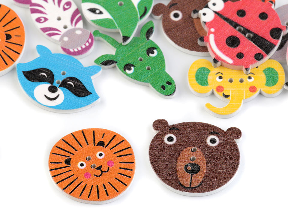 Dřevěné dekorační knoflíky v podobě zvířat jsou roztomilou dekorací, kterou si zamilují jak děti, tak dospělí. Můžete je nalepit na dřevěné kolíčky nebo třeba magnety. Využijete je také ve scrapbookingu, kde s nimi můžete ozdobit rámečky, přáníčka, jmenovky, pozvánky, deníky apod.