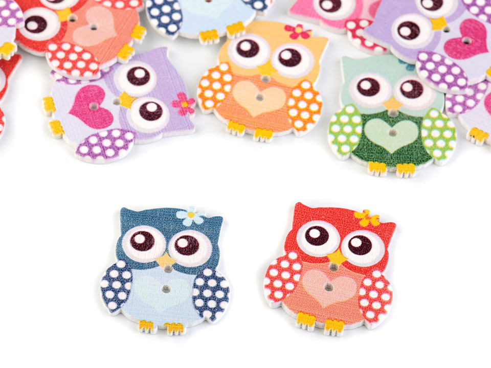 Dřevěné knoflíky s motivem soviček můžete použít ve scrapbookingu a ozdobit s nimi foto rámečky, alba, deníky, přáníčka apod.