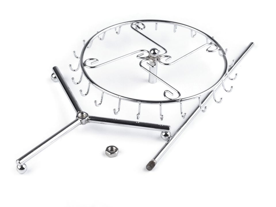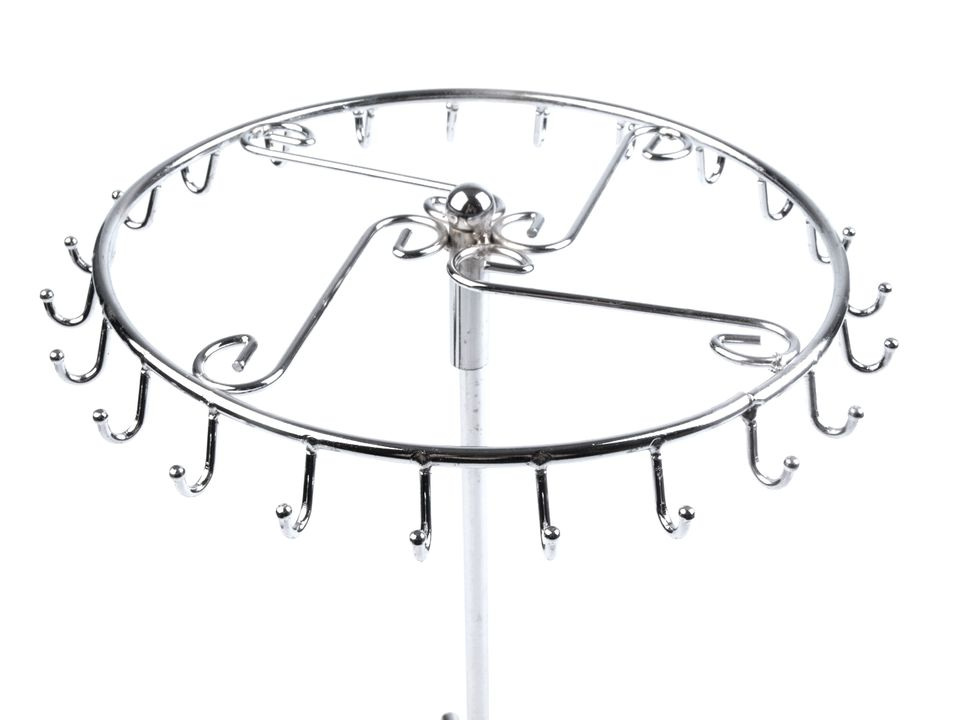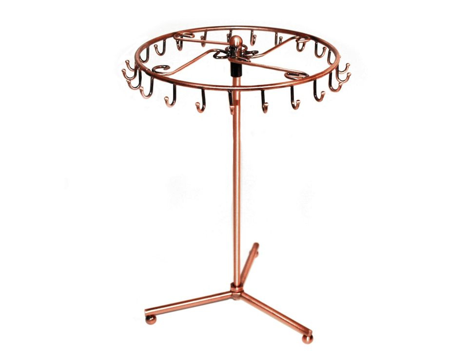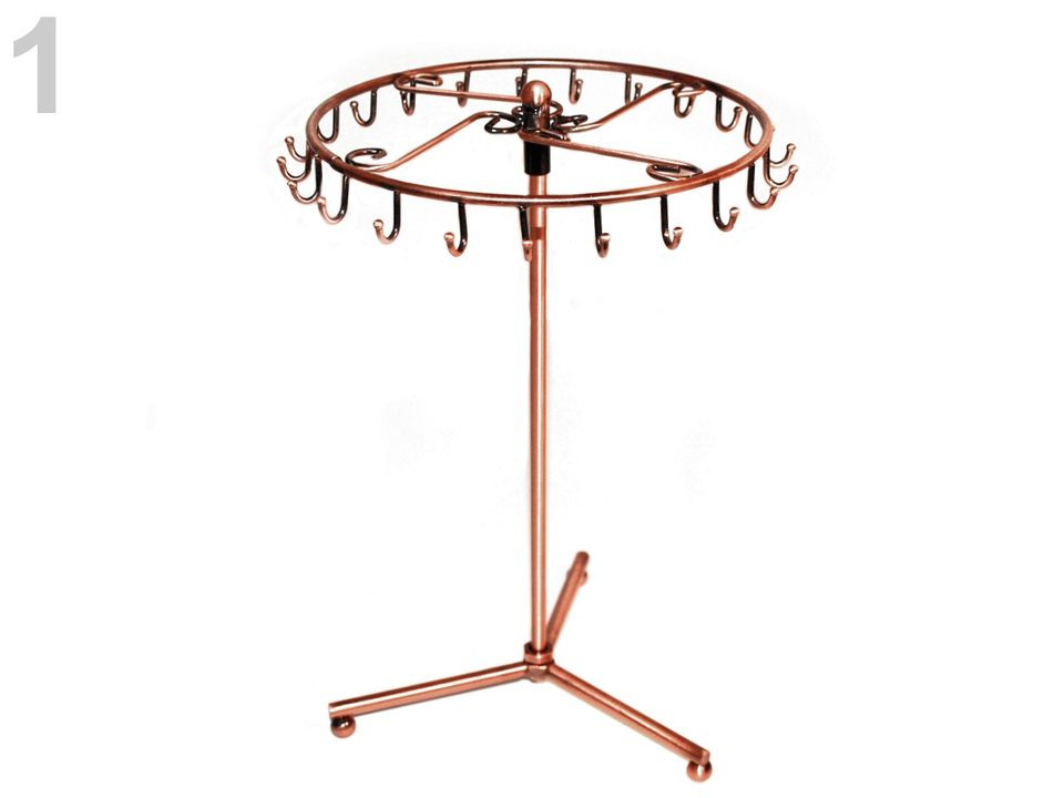 Stojan určený pro zavěšení náhrdelníků, náramků, přívěsků na řetízku a jiných typů bižuterie. Spoje měděného stojanu jsou v černé barvě díky sváření, toto zbarvení je zcela přirozené jelikož se jedná o měď. Podstavec má 15x17cm, výška 31cm, sluníčko Ø20cm, na něm je umístěno 23 háčků (1x2cm).