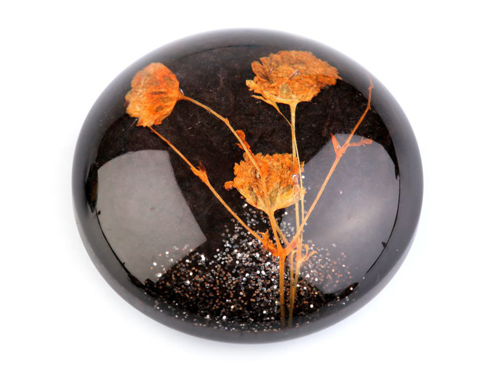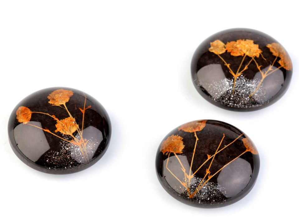 Kulaté knoflíky zaujmou na první pohled svým designem. Uvnitř najdete sušené květy.