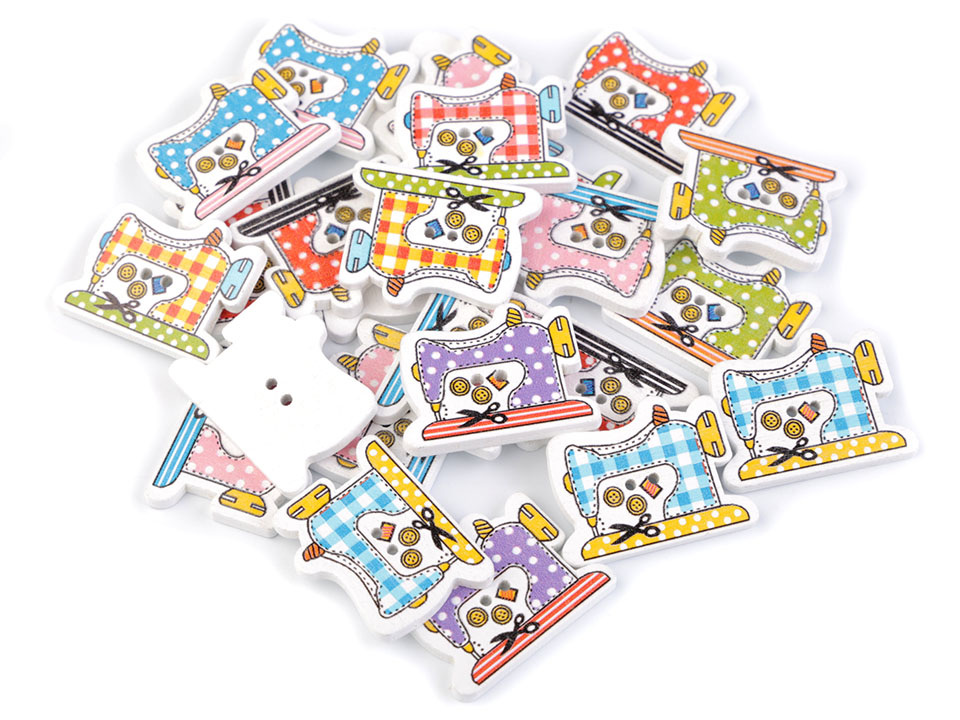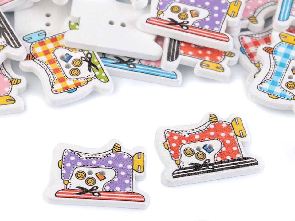 Dřevěné dekorační knoflíky s designem šicího stroje si zamilují všechny švadlenky a další kreativci. S knoflíky můžete ozdobit rámečky, krabičky, deníky a zápisníky, pozvánky nebo přáníčka.