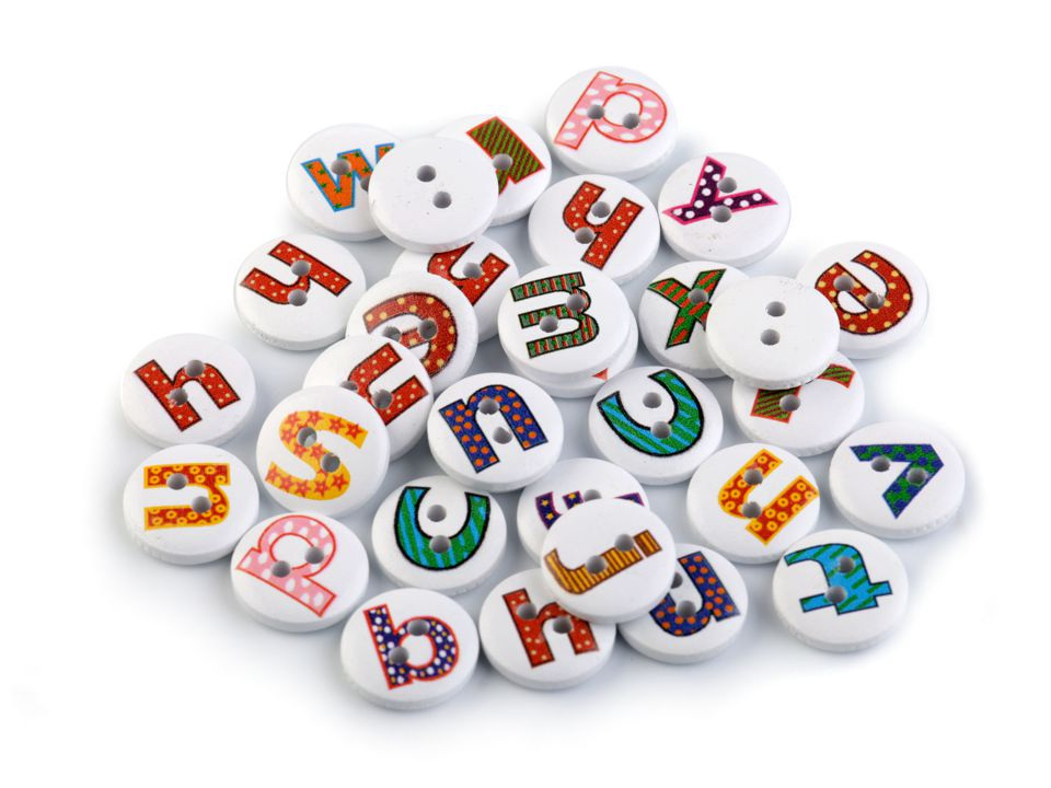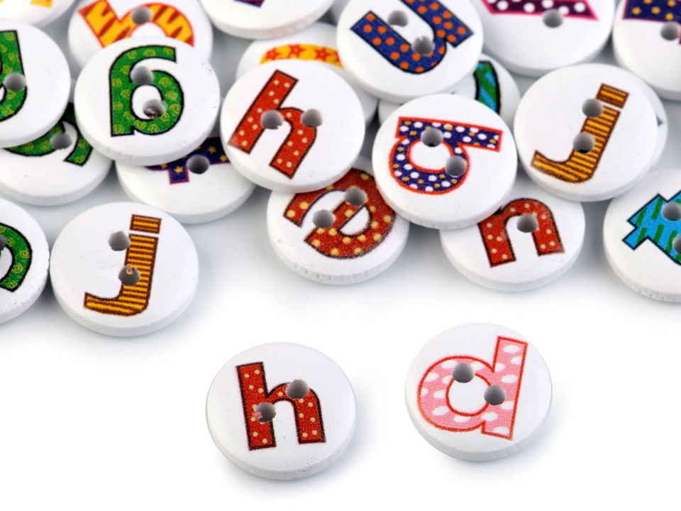 Dřevěné knoflíky s potiskem písmen působí vesele. Můžete je použít ve scrapbookingu. Ozdobí vaše foto rámečky, alba, deníky, přáníčka a pozvánky.
