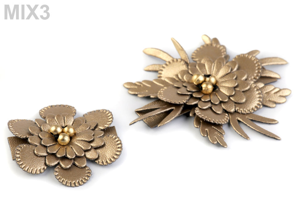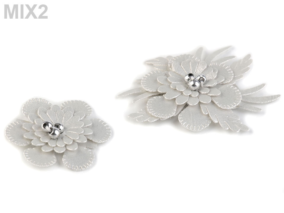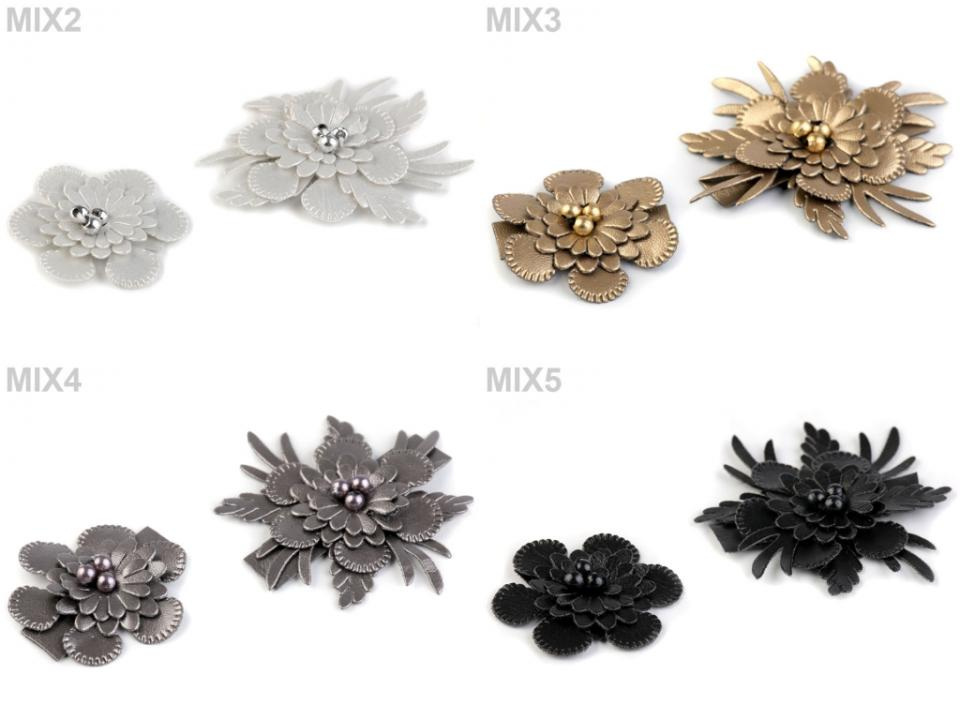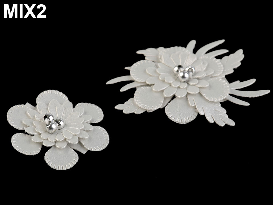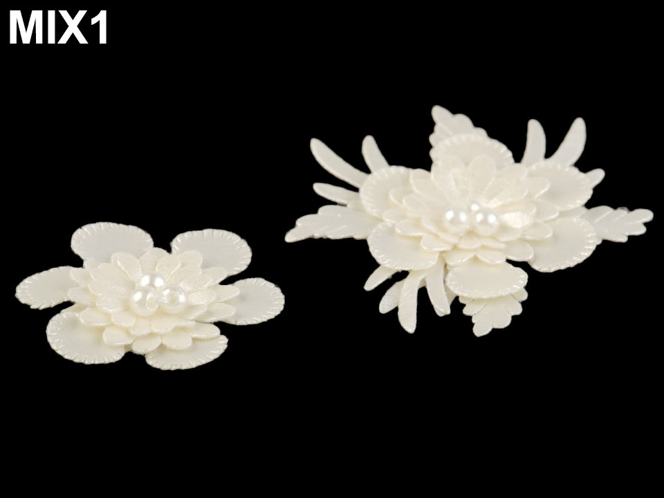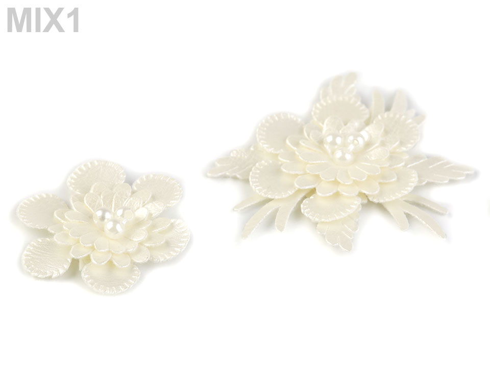 Textilní květy působí luxusním dojmem díky lesklému materiálu na povrchu. Květy s 3D efektem jsou vyrobené z několika vrstev různých designů. Uprostřed jsou zdobeny třemi korálky, které jsou ke květu pevně přišity. V balení jsou 2 druhy květů.