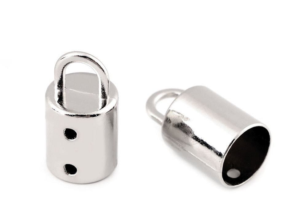 Koncovka na šňůrku má vysoký lesk a je vyrobená z nemagnetického kovu. Nehrozí, že vám zreziví. Koncovku využijete na výrobu uch k taškám a kabelkám. Šňůra se dovnitř vlepuje pomocí lepidla.