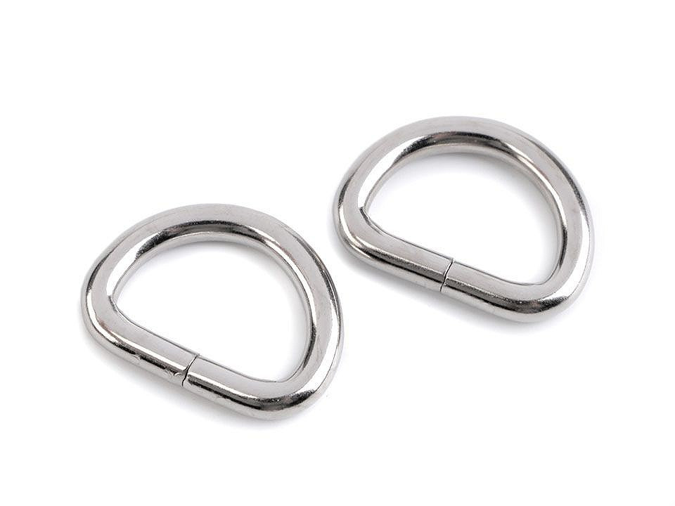 Kovový polokroužek se používá k uchycení ucha kabelky nebo tašky. Je vhodný také na výrobu obojků pro domácí mazlíčky.