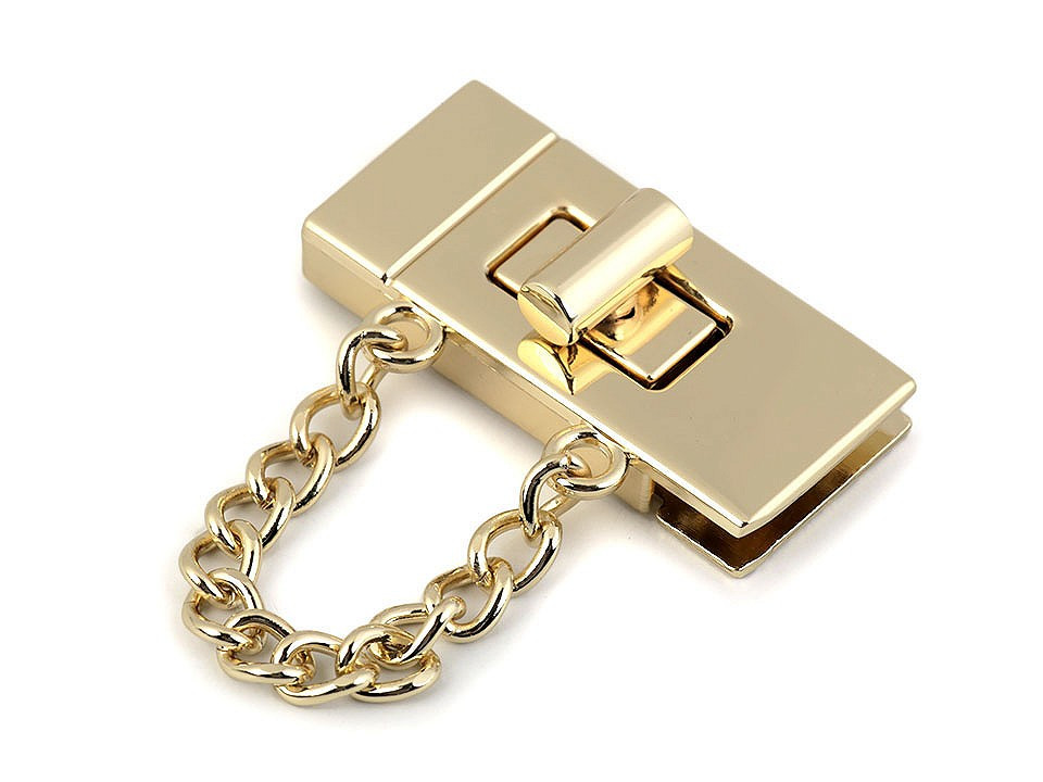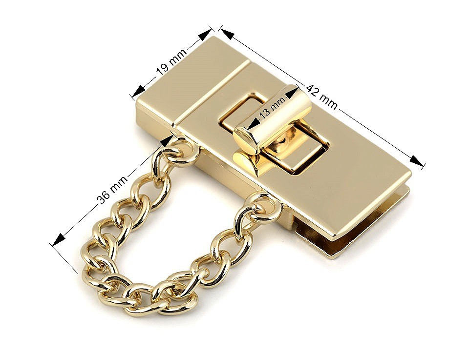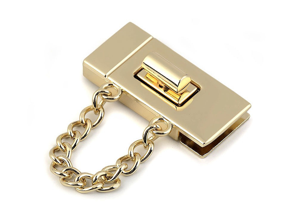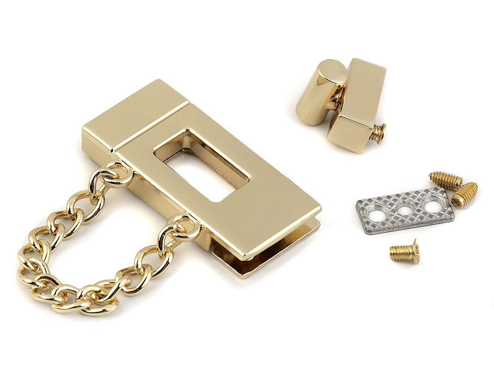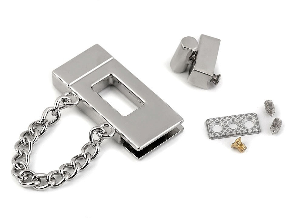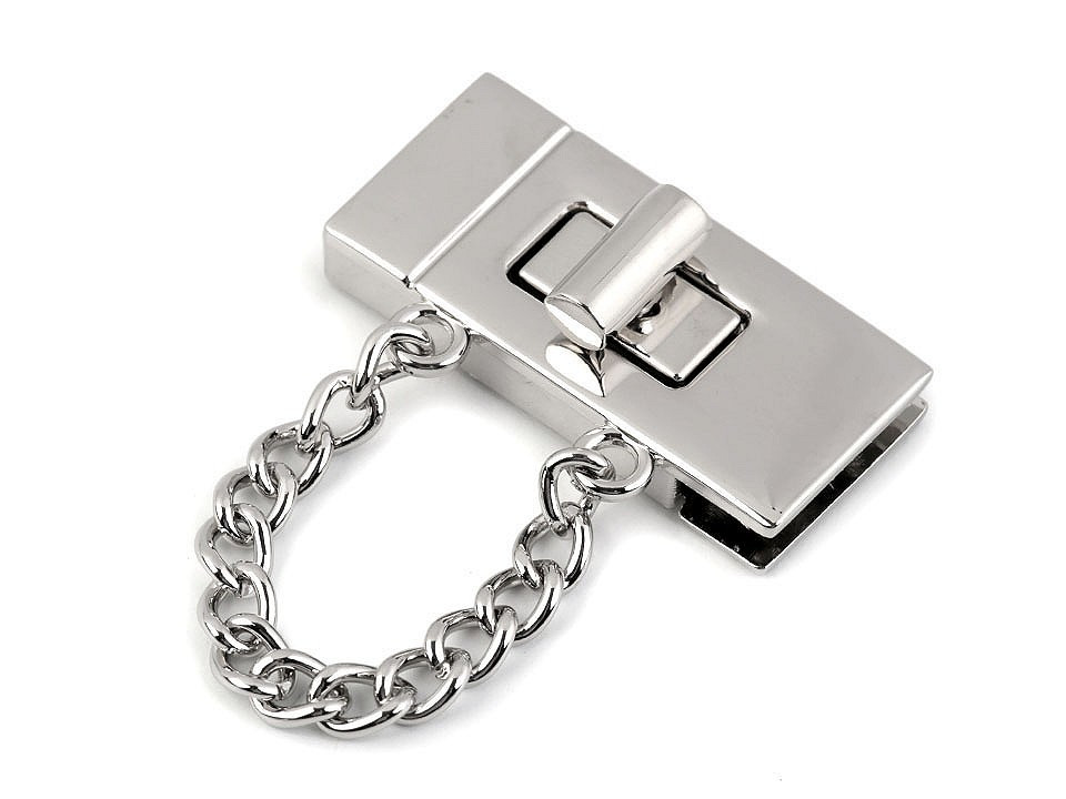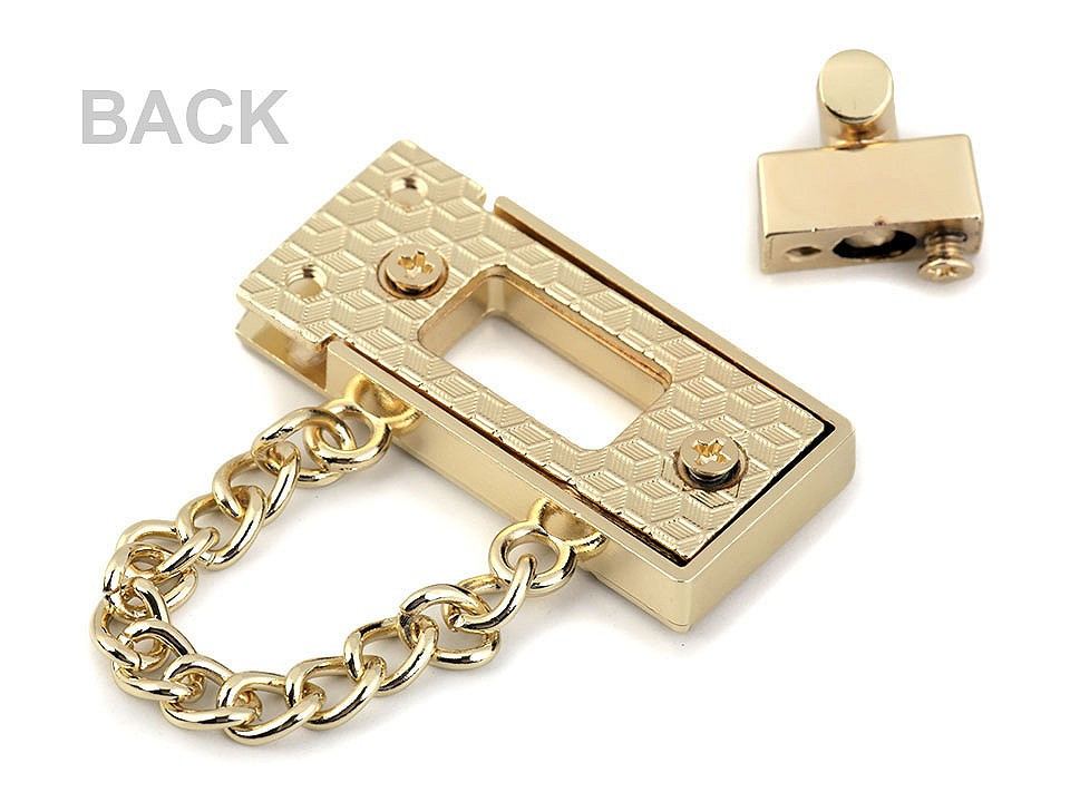 Zapínání na tašku či kabelku doporučujeme použít na tašky s klopou, na kterou připevníte část s řetízkem. Připevňuje se pomocí šroubků, které jsou součástí balení.