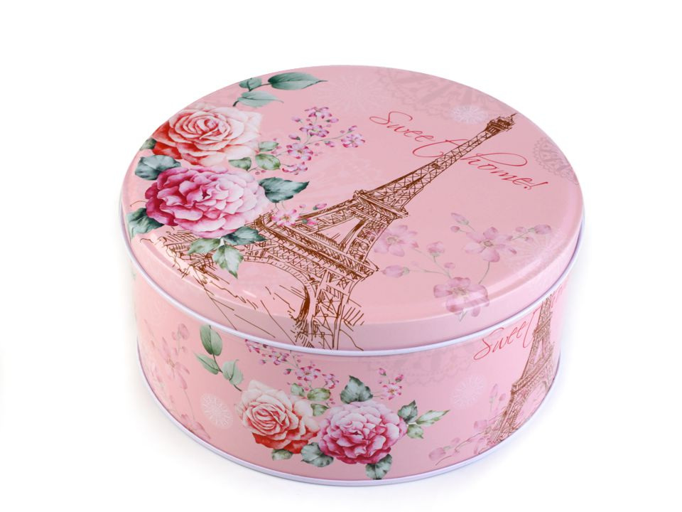 Kulatá plechová krabice s designem Paříže je stylová a zároveň praktická. Můžete do ní schovat své poklady nebo ji využít na zabalení dárků.