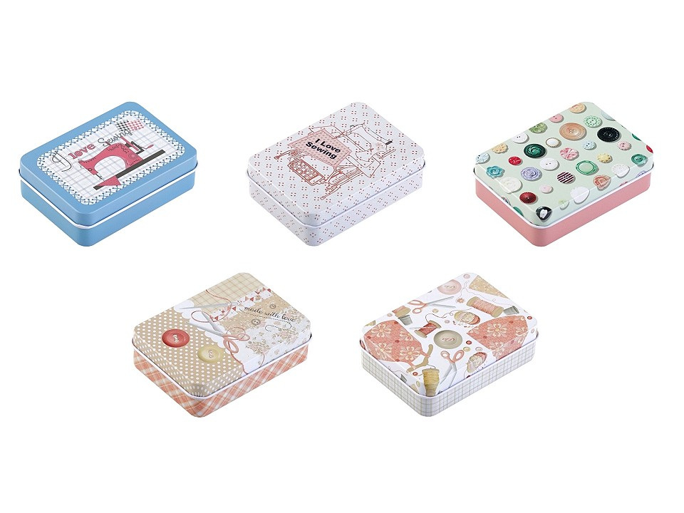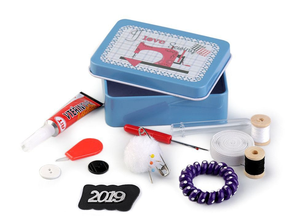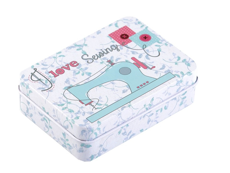Šitíčko ve stylové plechové krabičce je ideální na cesty.