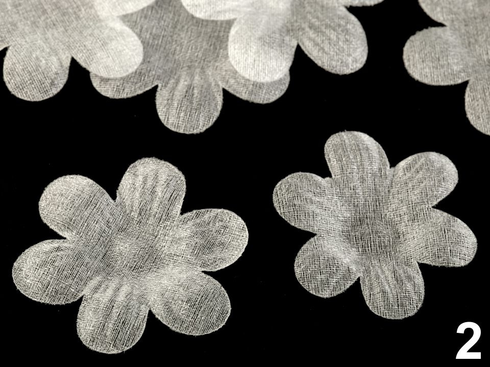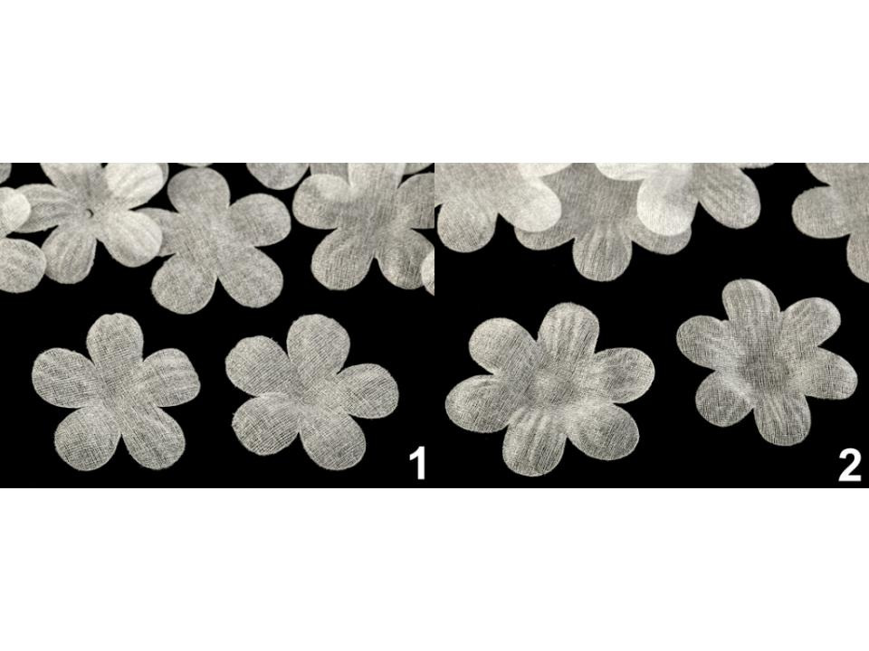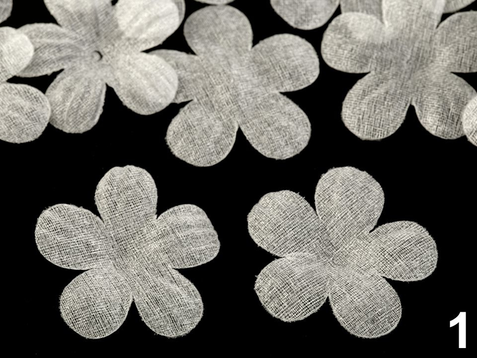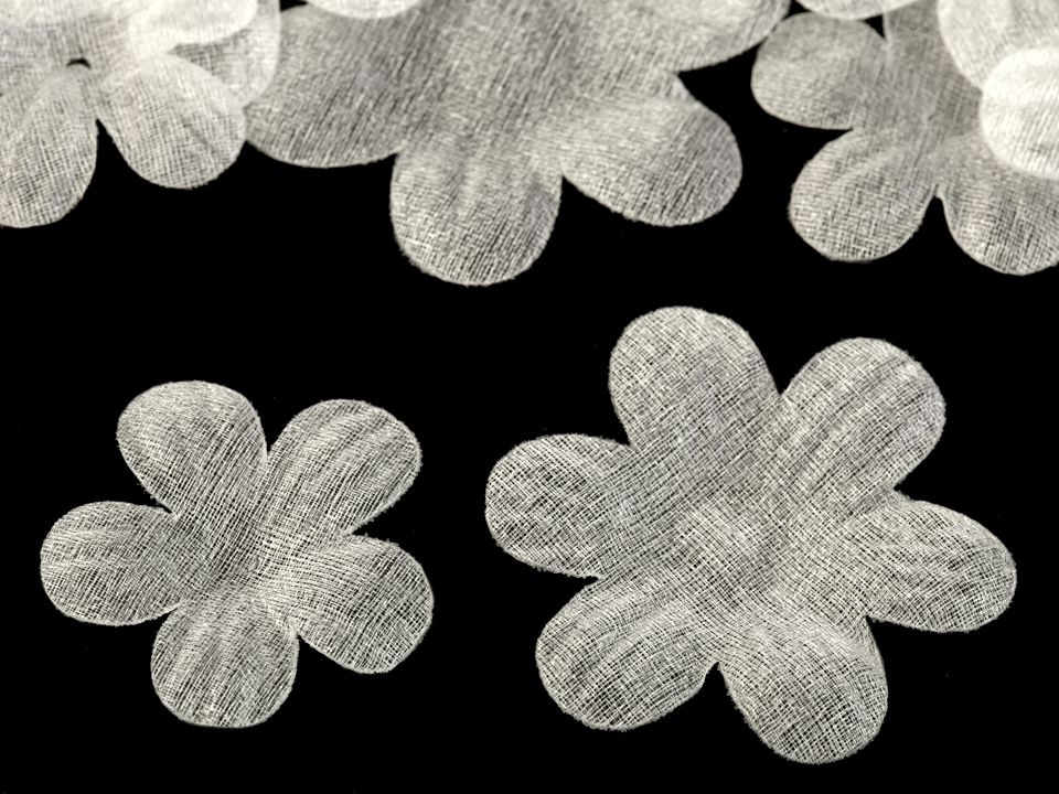 Použití: Květy lze přišít nebo nalepit. Pokud květy uprostřed ozdobíte broušeným kamínkem, vytvoříte elegantní doplněk. Skvěle budou vypadat na oblečení a módních doplňcích jako jsou brože. Můžete jimi ozdobit čelenky do vlasů, klobouky, tašky apod. Využijete je i k dekoraci přání, jmenovek na stůl apod.