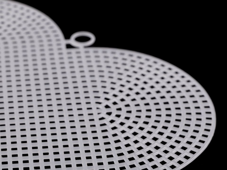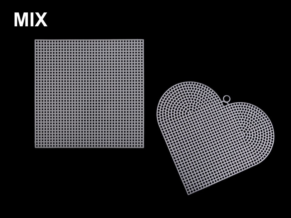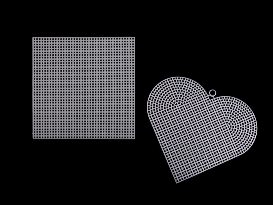 Plastovou mřížku využijete na vyšívané závěsné dekorace. Obrázek se vyšívá klasickým křížkovým nebo gobelínovým stehem. Používá se silnější příze. Plastovou mřížku můžete stříhat do požadovaného tvaru, okraje se netřepí jako u klasické vyšívací látky.
