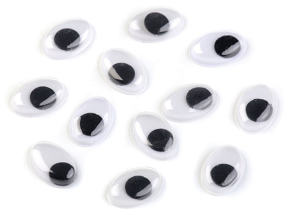 Plastové oči oválného tvaru mají uvnitř černou čočku, která se pohybuje. Tyto očka dodají vašemu výtvoru opravdový výraz.