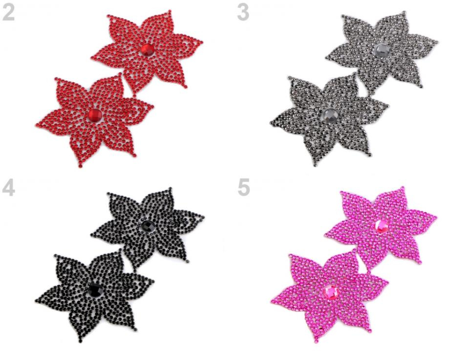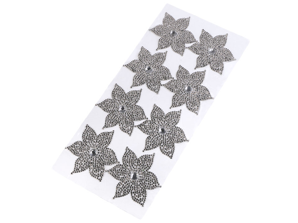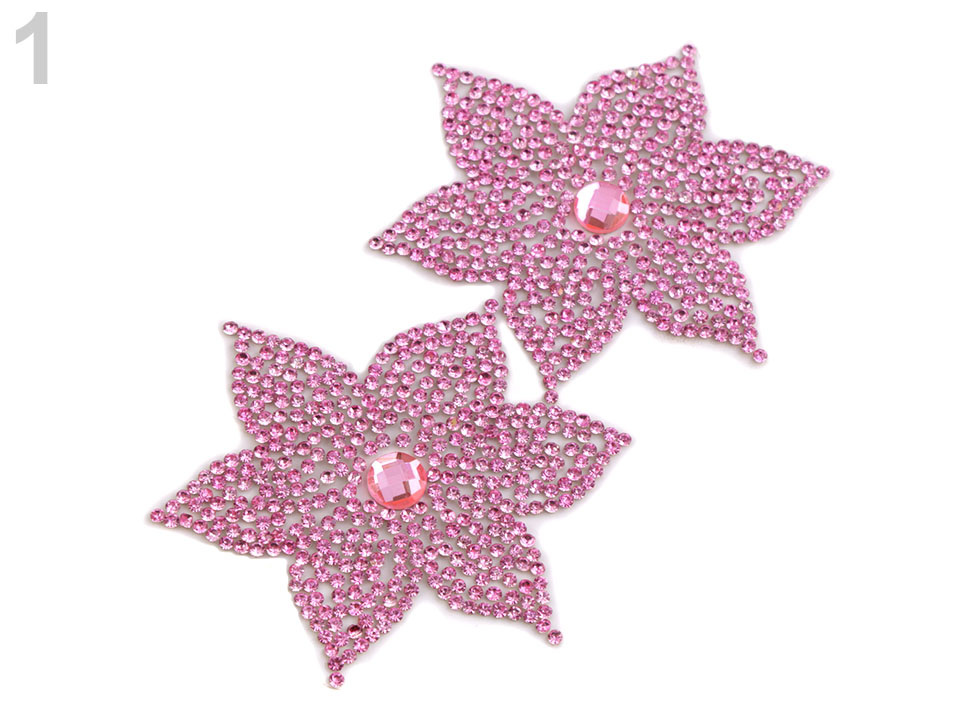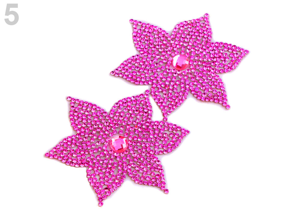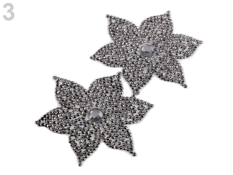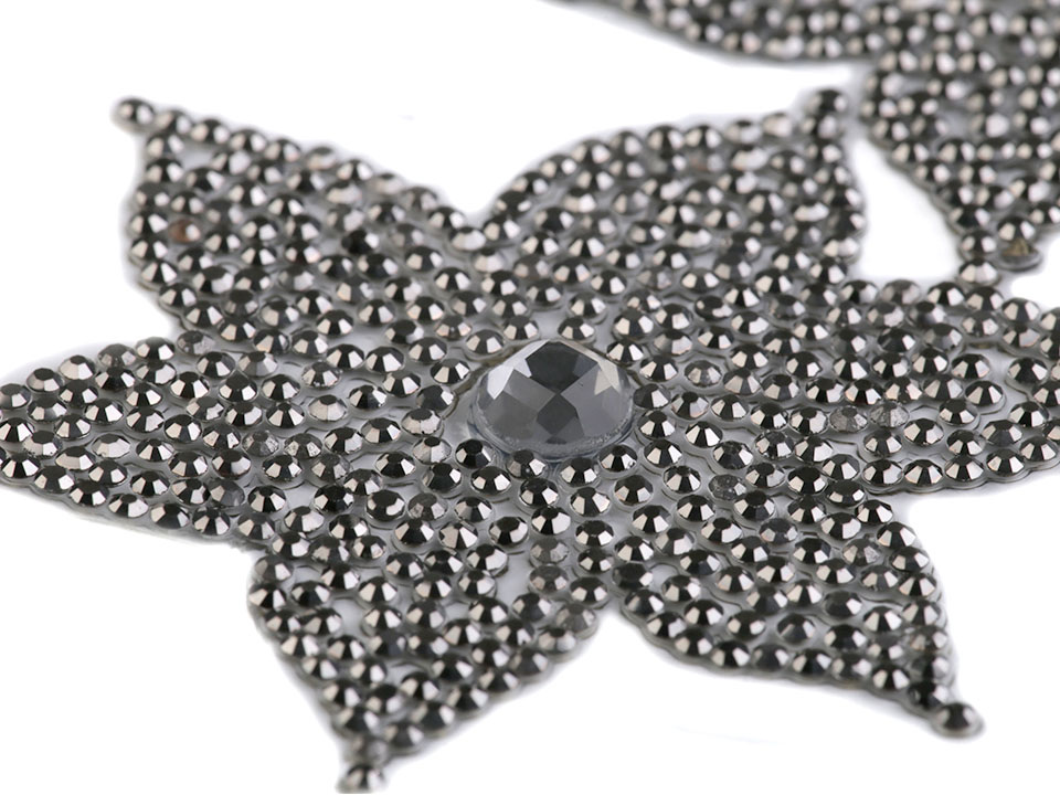 Nažehlovací květ je vyrobený z broušených kamínků. Základem je lepící vrstva, která po nažehlení pevně drží na oděvu. Tato aplikace vám jistě usnadní práci při zdobení oděvů.