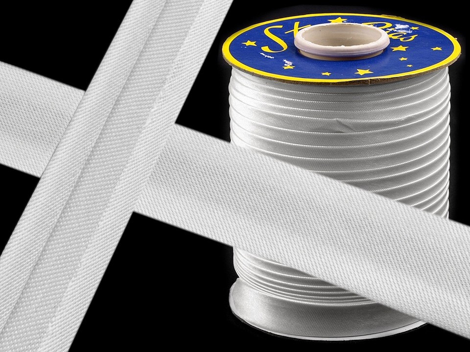 Šikmý proužek saténový šíře 20 mm zažehlený - 2001 White