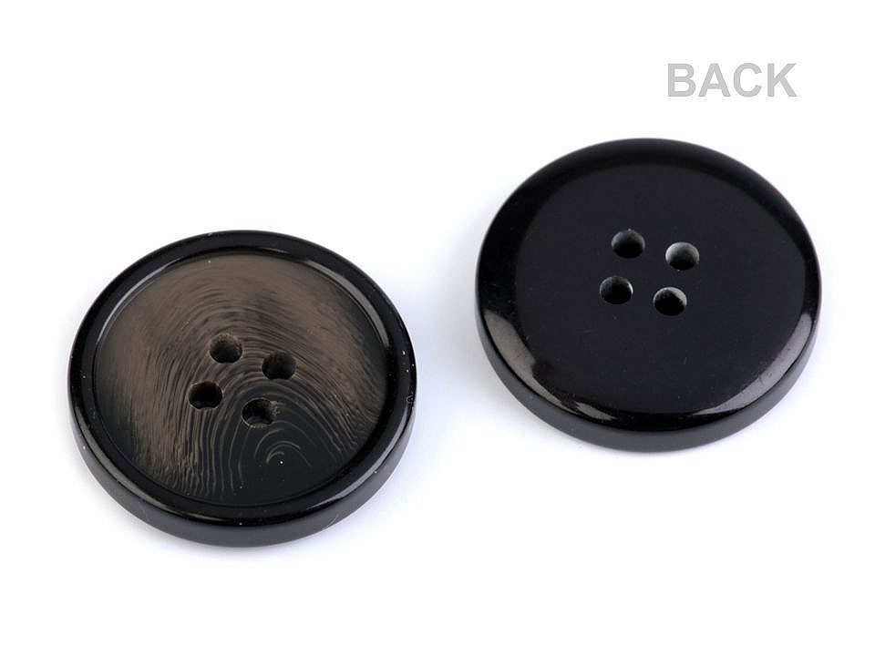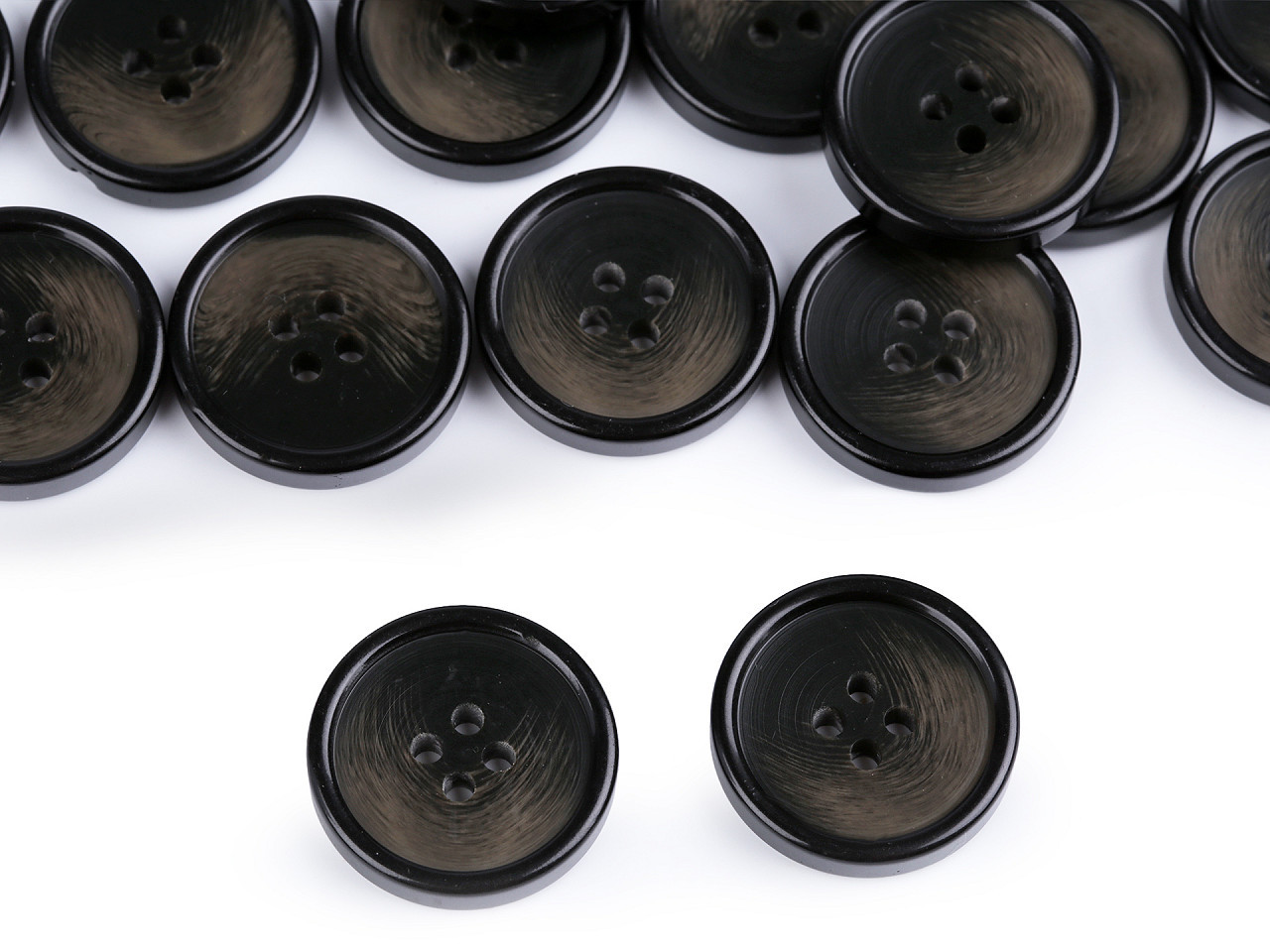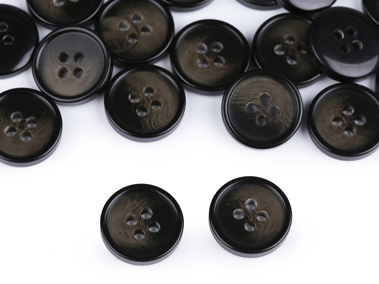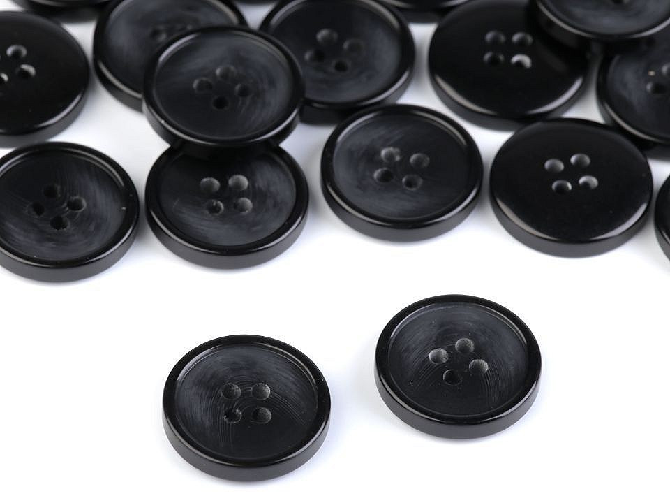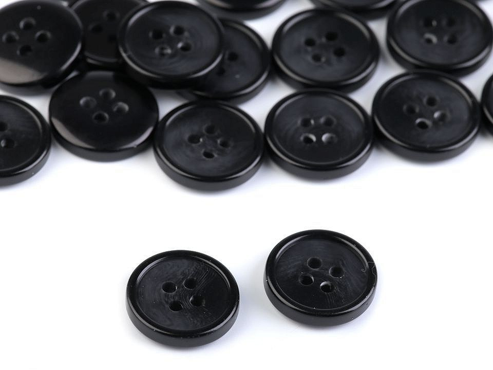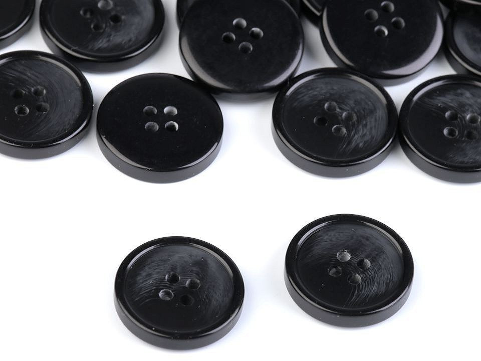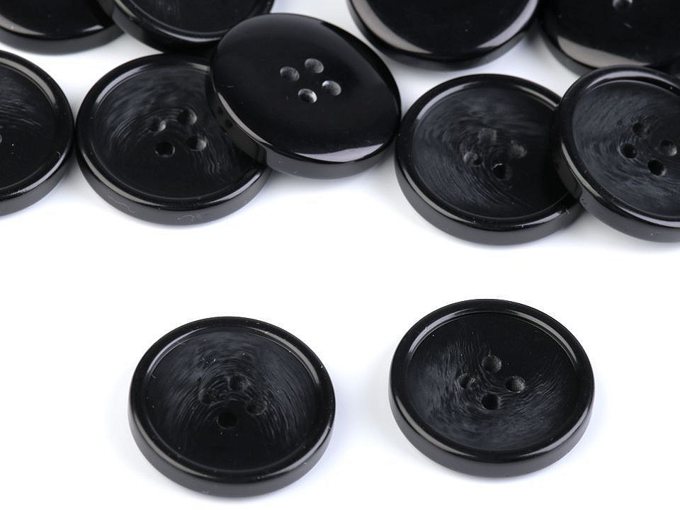 Čtyřdírkové knoflíky umožňují několik druhů přišití. Mají lehce zvýrazněný okraj.