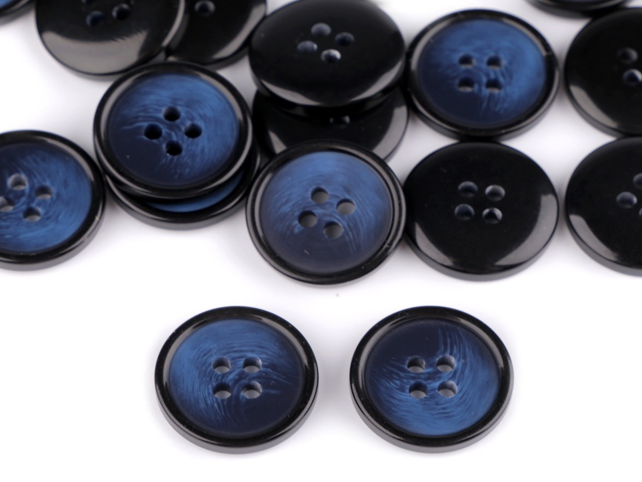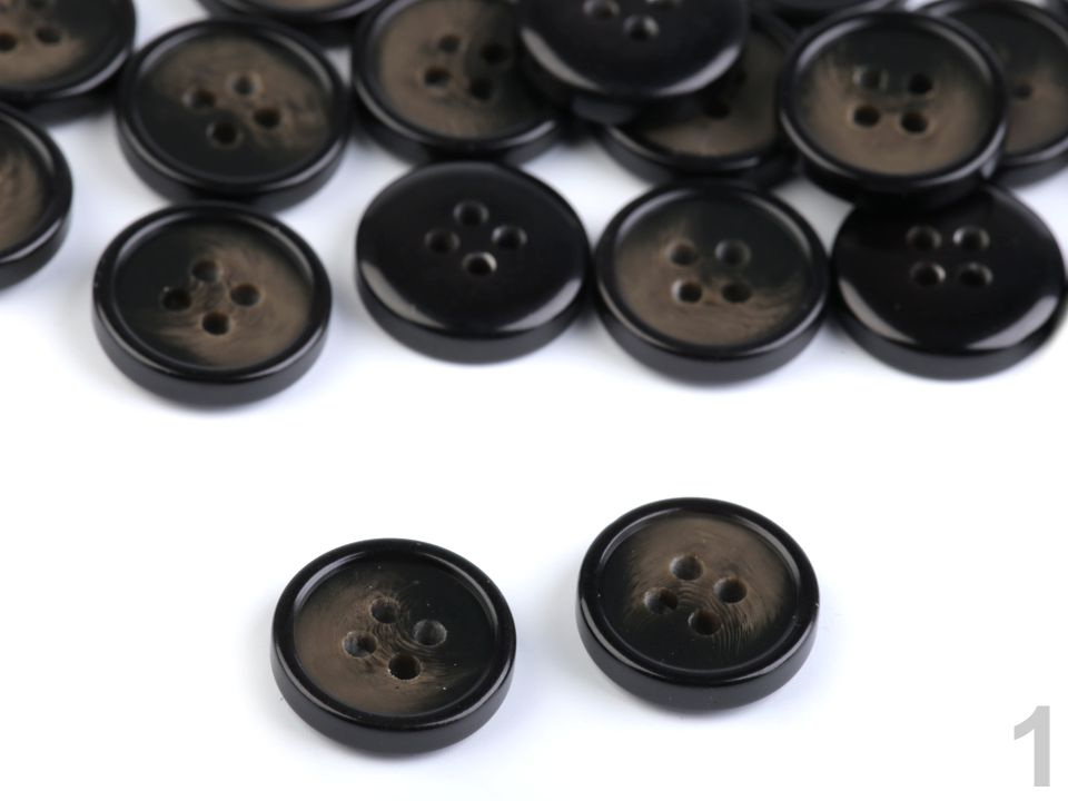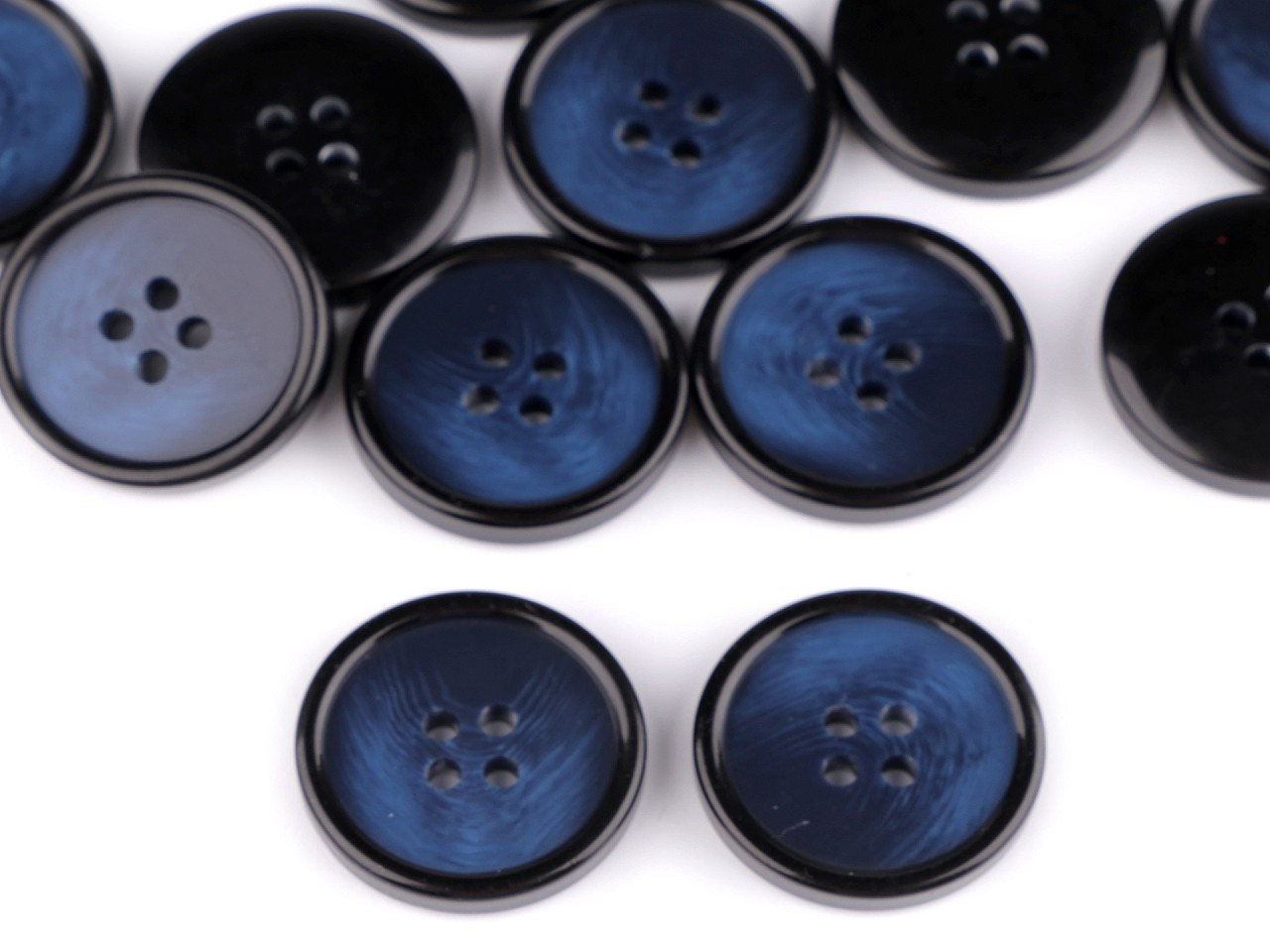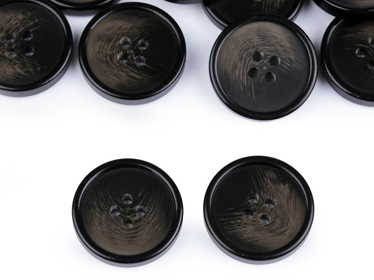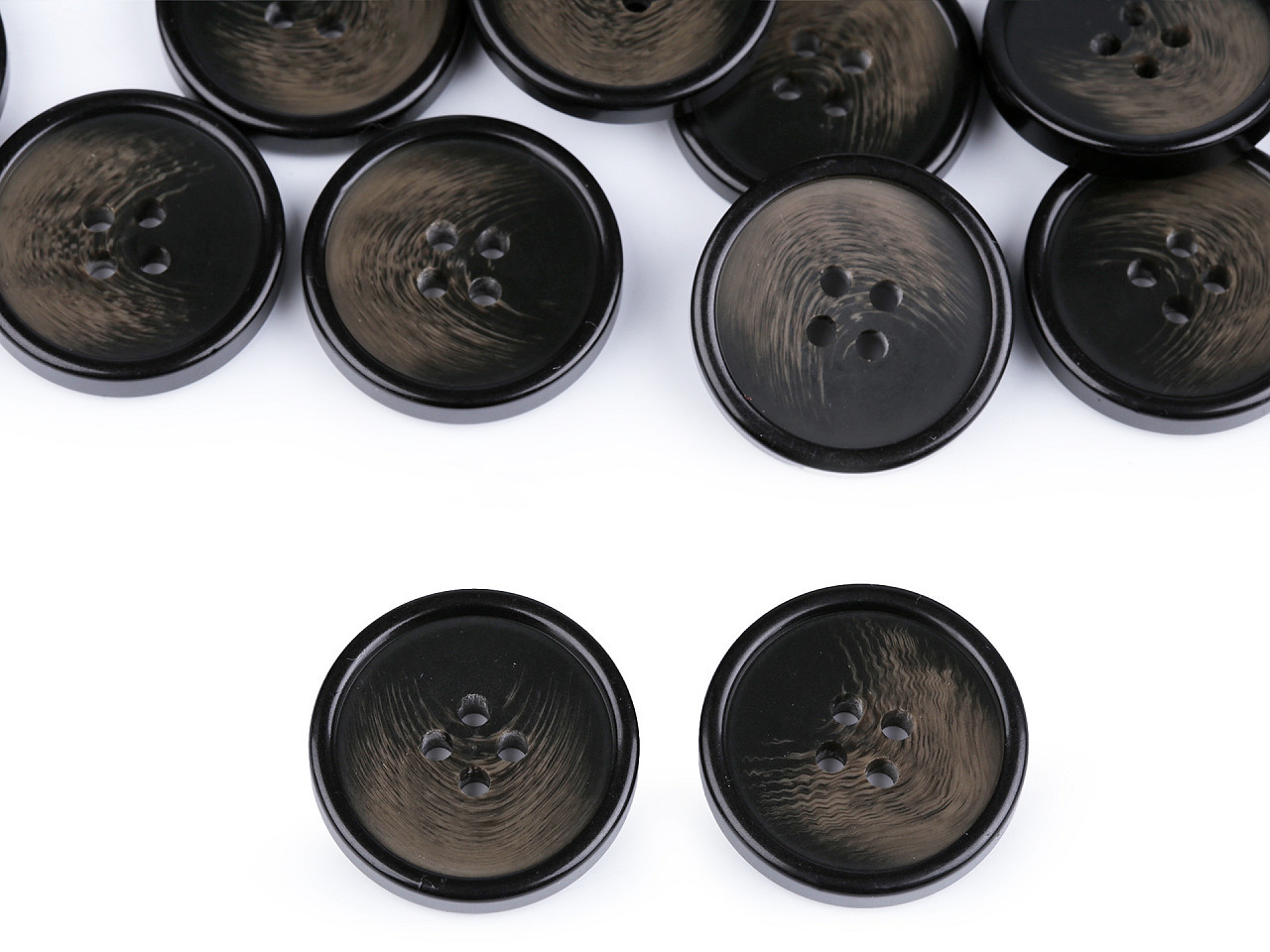 Čtyřdírkové knoflíky umožňují několik druhů přišití. Mají lehce zvýrazněný okraj.