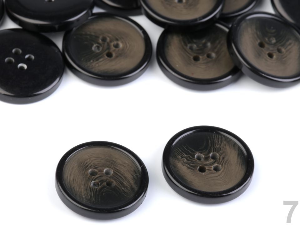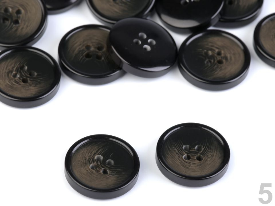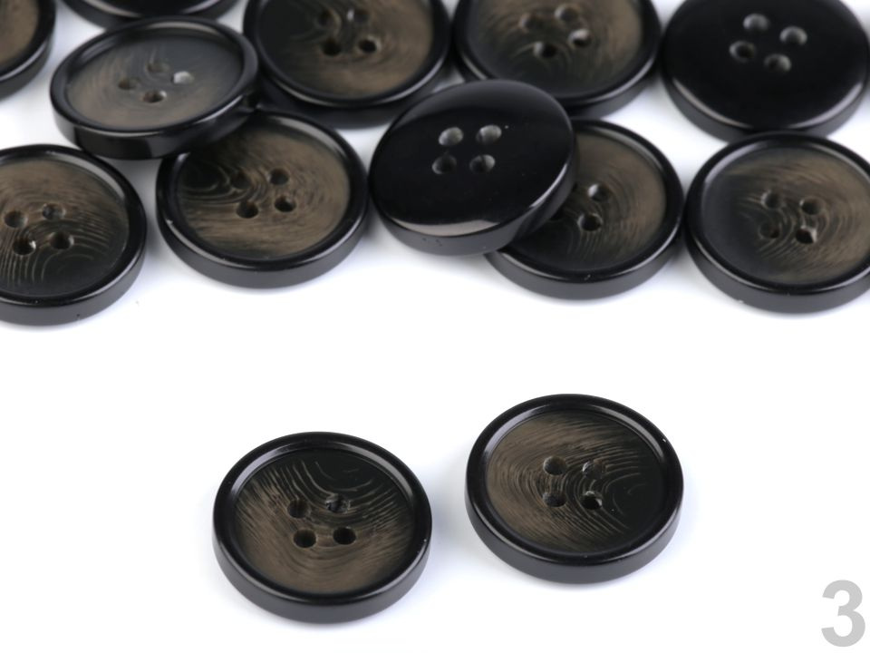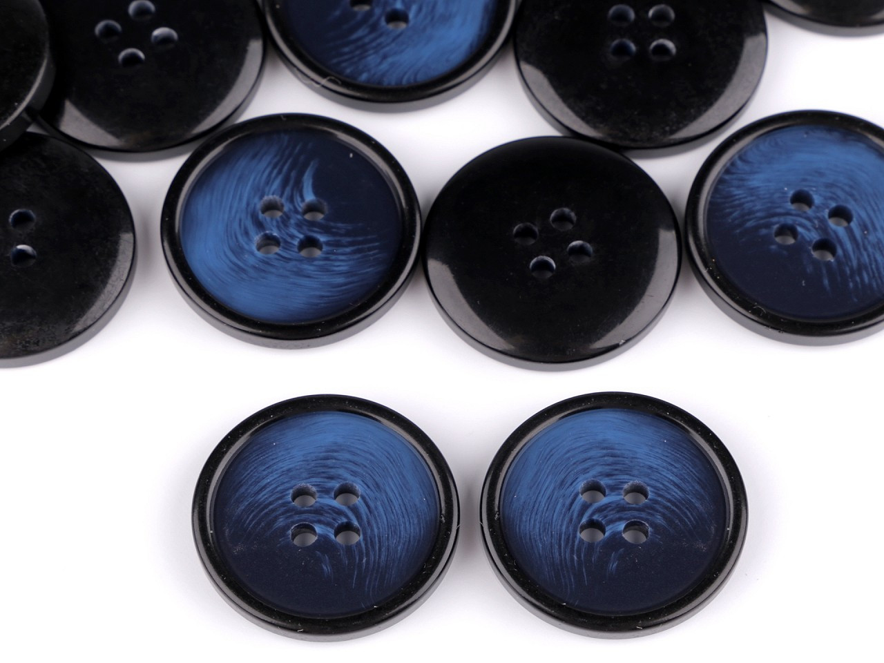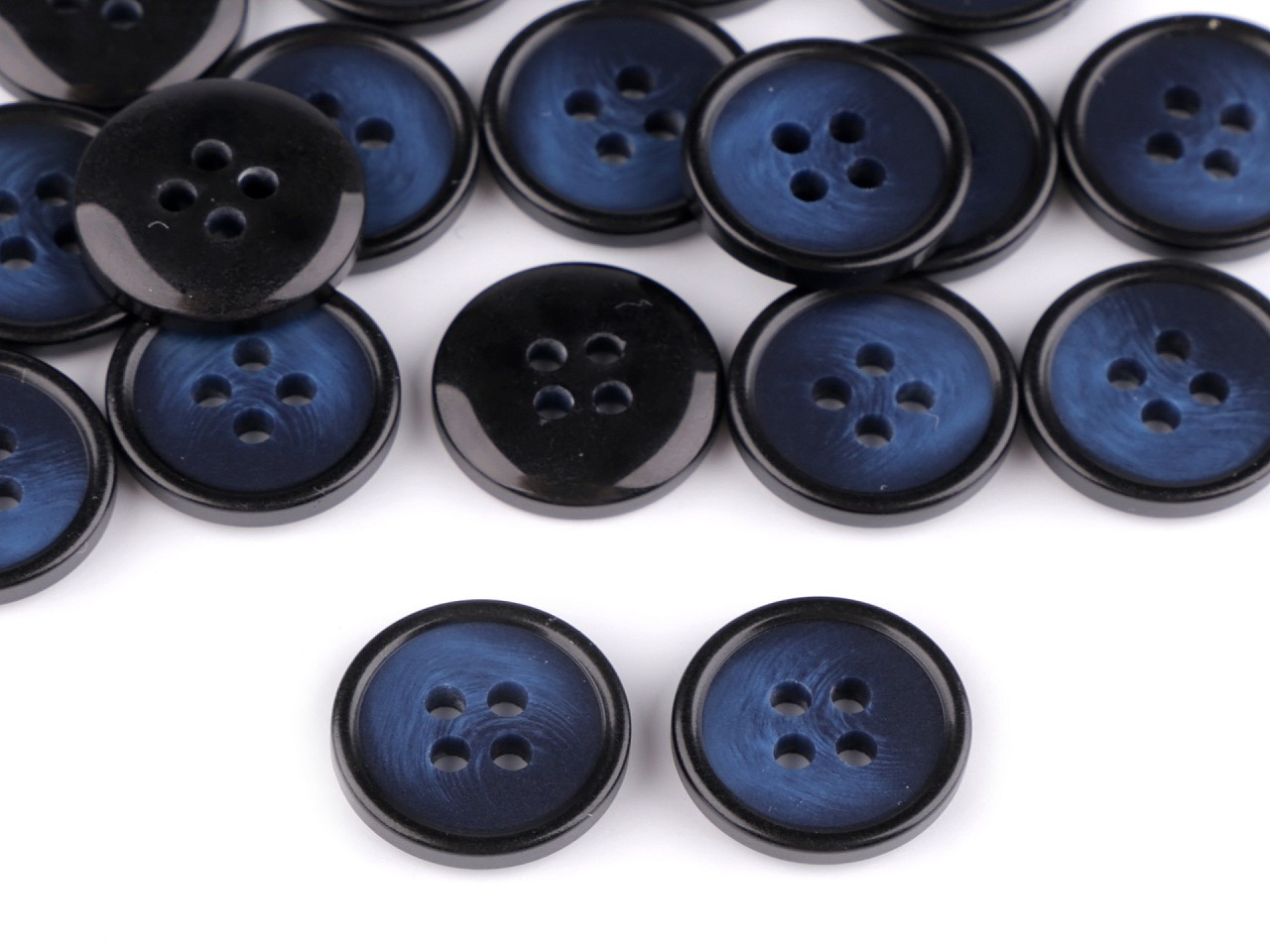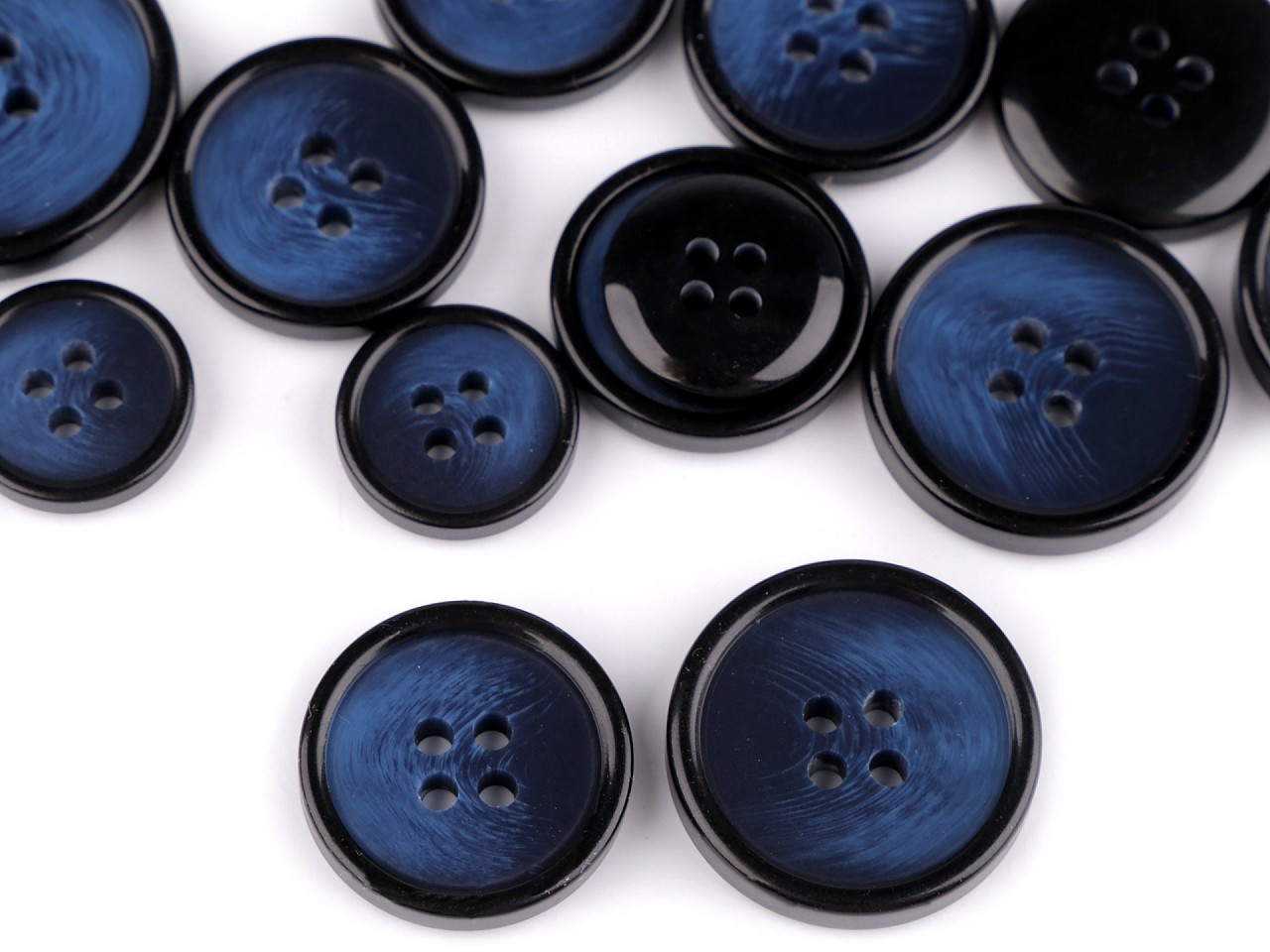Čtyřdírkové knoflíky umožňují několik druhů přišití. Mají lehce zvýrazněný okraj.