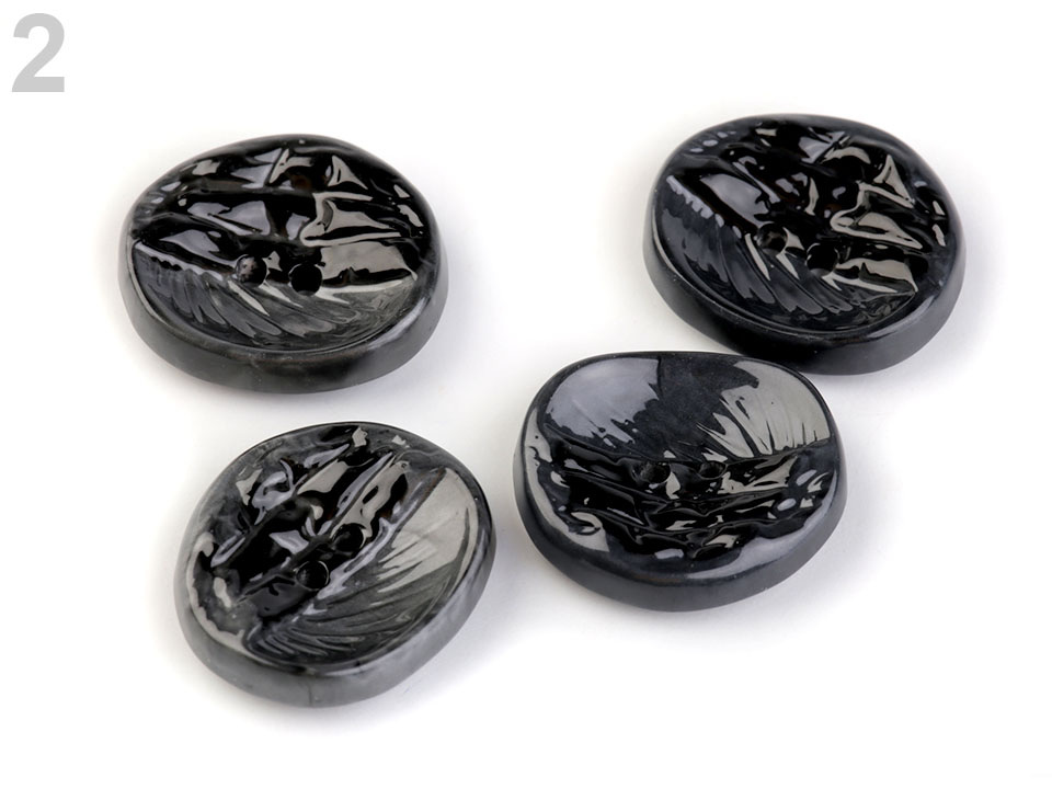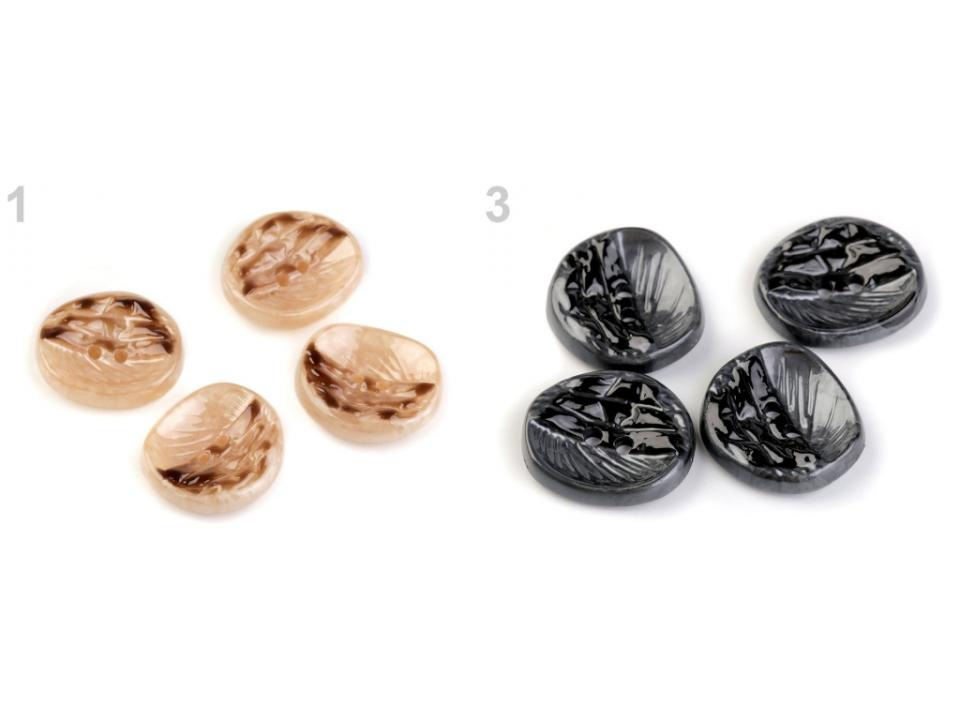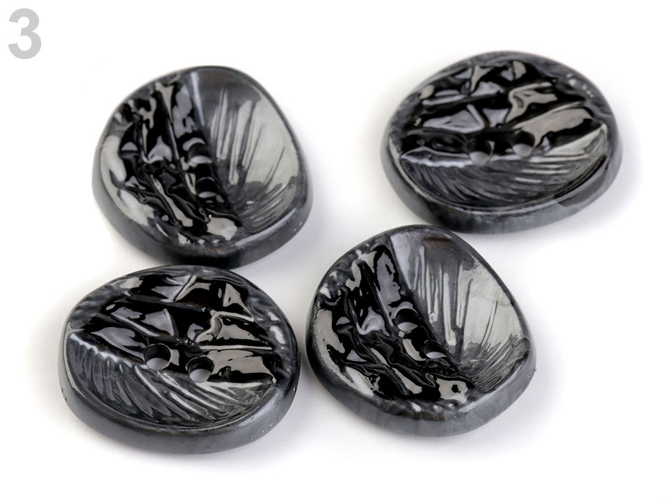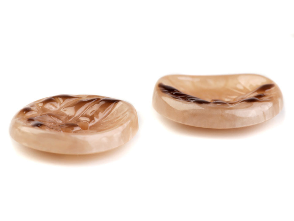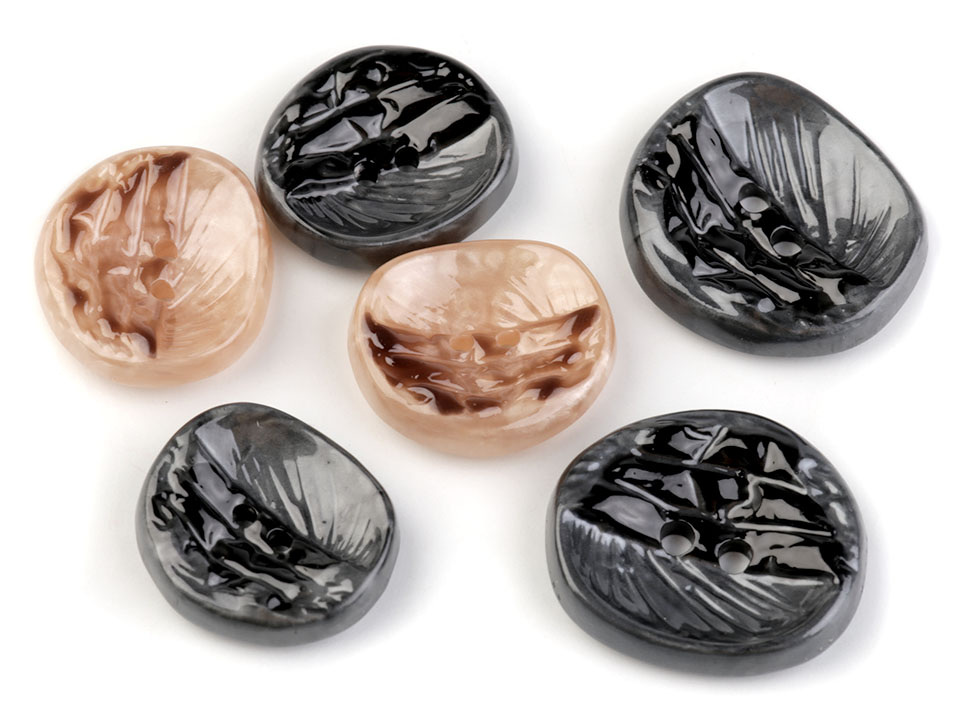 Designové knoflíky zaujmou svým nevšedním jemně prohnutým tvarem s rýhováním. Využijete je jako zapínání na kabáty, svetry nebo i větší tašky.