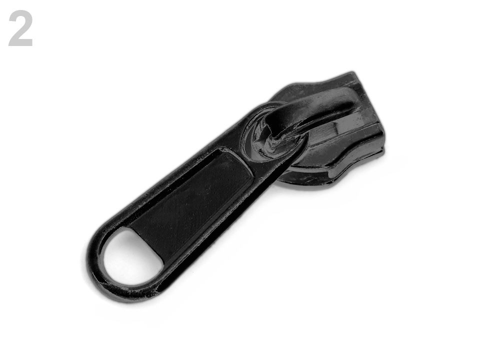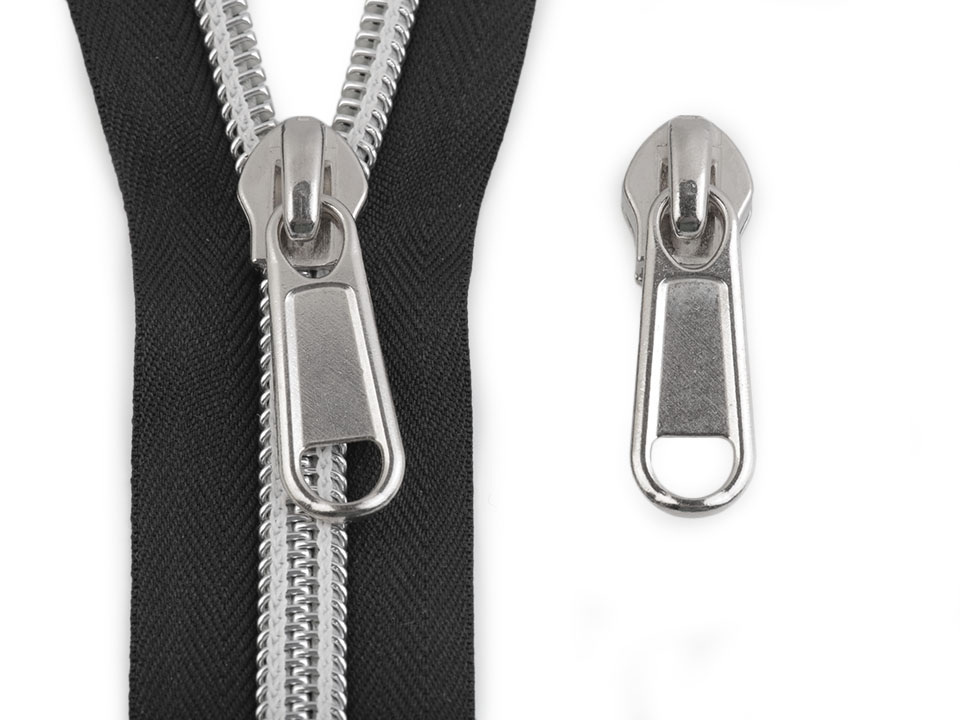 Kovový jezdec je určený ke spirálovým zipům v metráži s šířkou 10 mm, které najdete pod kódem 118169. Je bez aretace (bez brzdy). Využijete ho převážně na stanové zipy, spacáky, batohy, tašky apod.