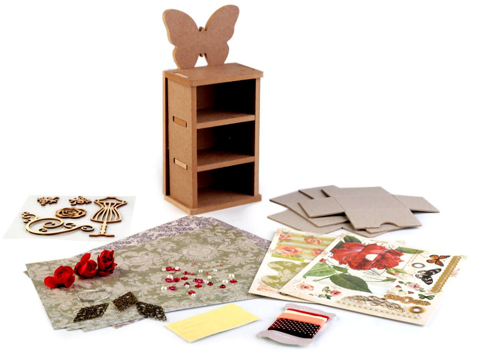 Kreativní šperkovnice s motýlem ve vintage stylu nadchne tvořivé dívky i ženy všech věkových kategoríí. Je zajímavým projektem především pro příznivce scrapbookingu.