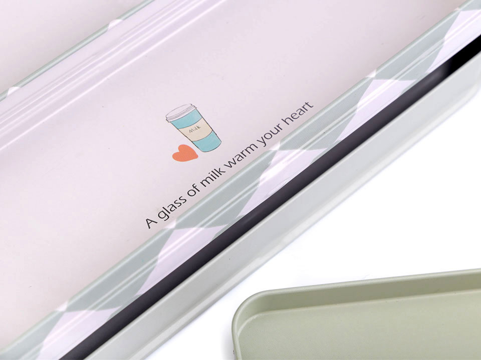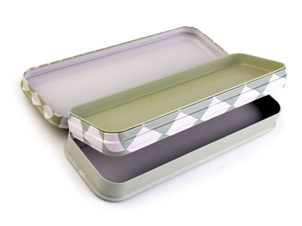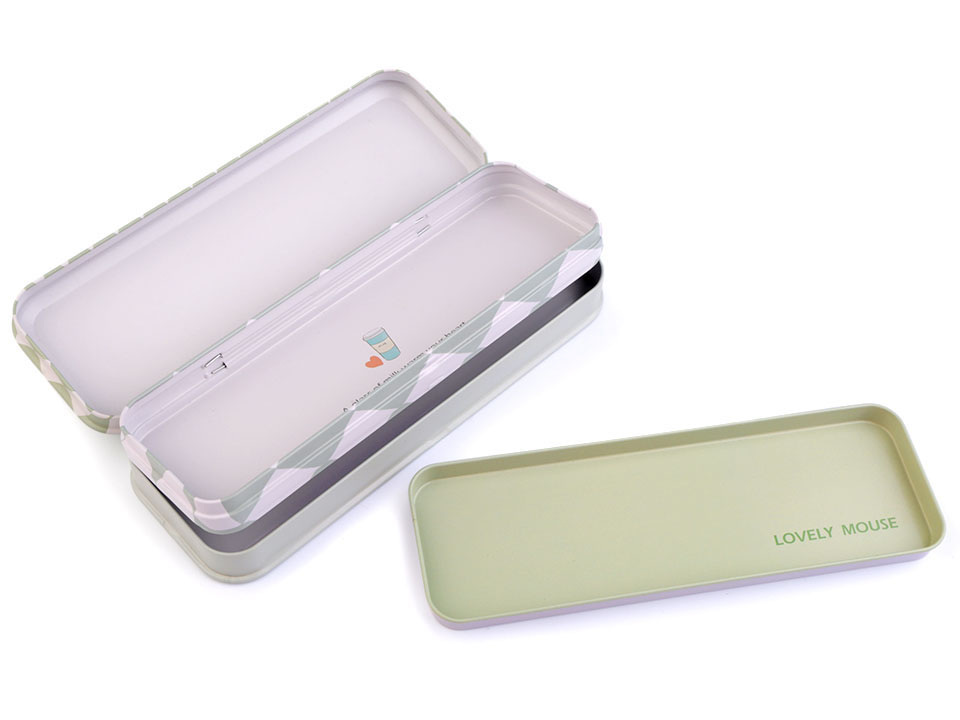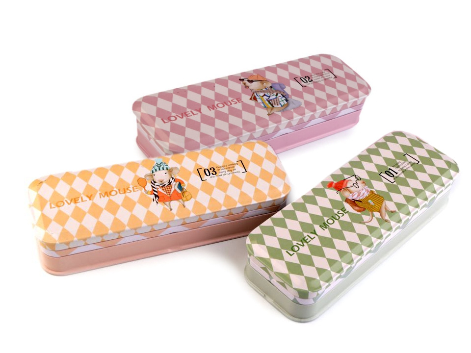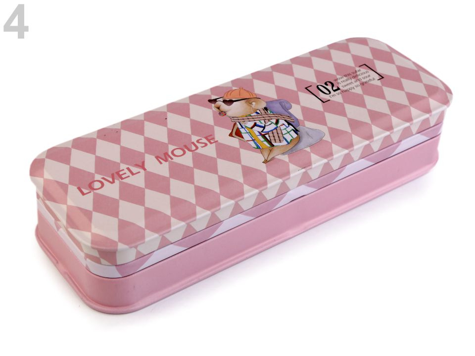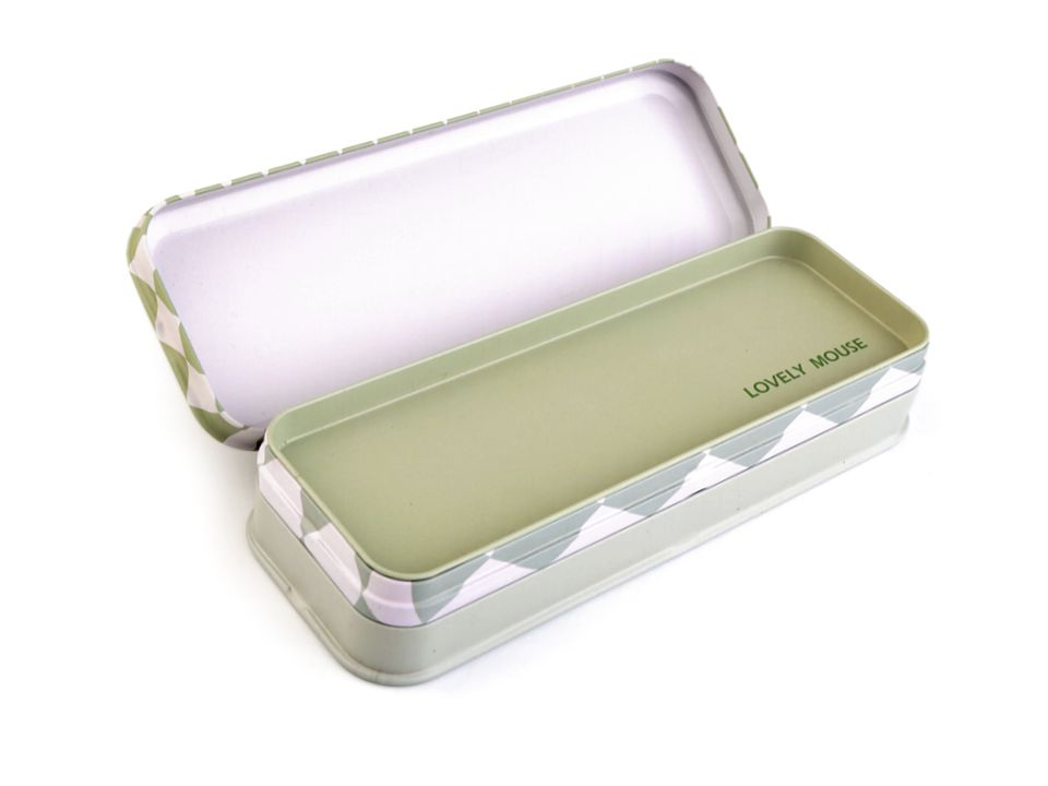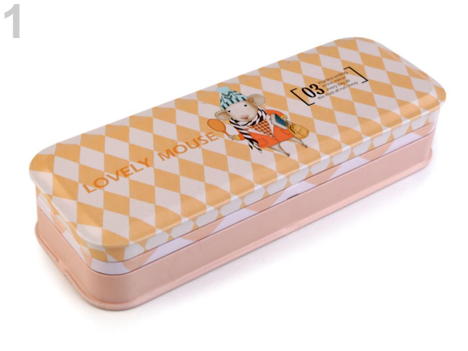 Třípatrový kovový penál s designem kostek má na horní straně vyobrazenou postavičku myšáka. V penálu schováte tužky, propisky pastelky i drobné věci jako gumu či kancelářské sponky. Horní patro má vytahovací vložku, pod kterou můžete schovat sadu tenkých fixů, papírky s poznámkami, tajné vzkazy nebo třeba taháky.