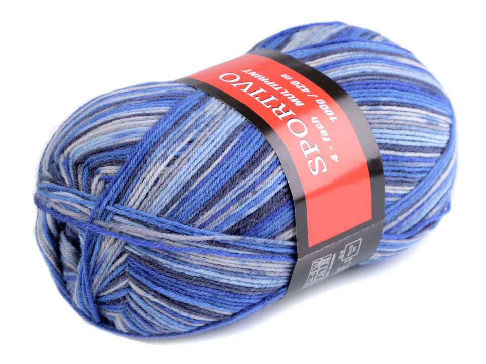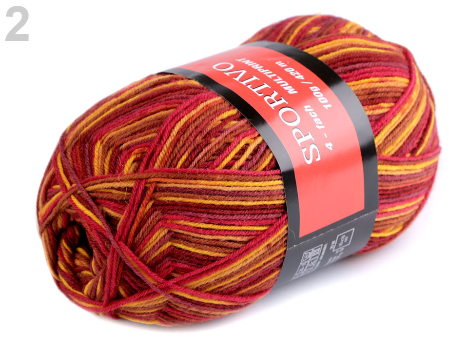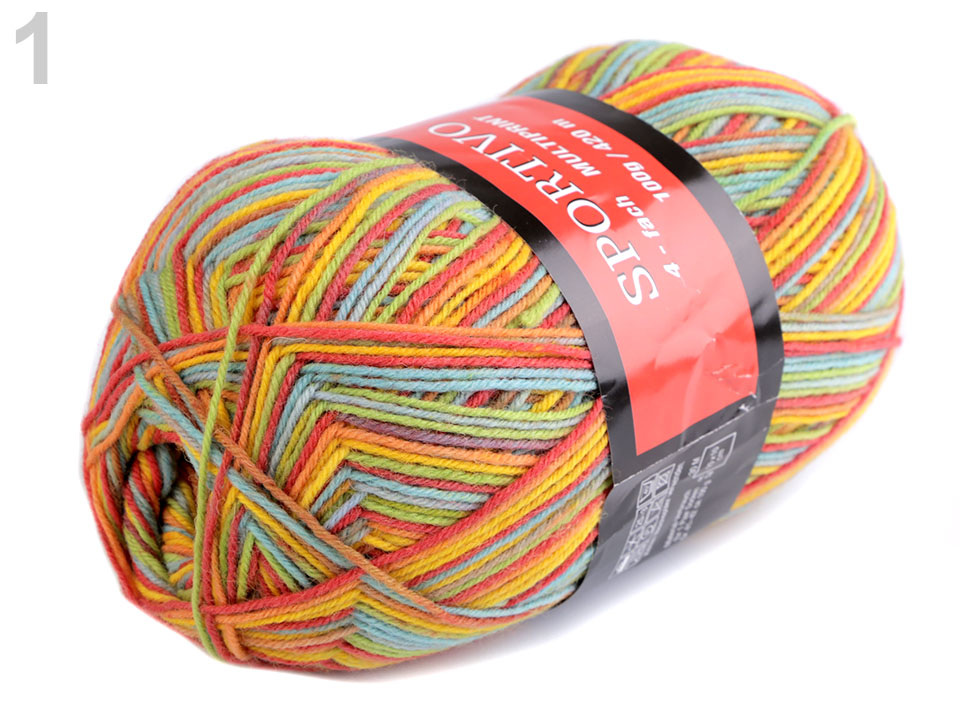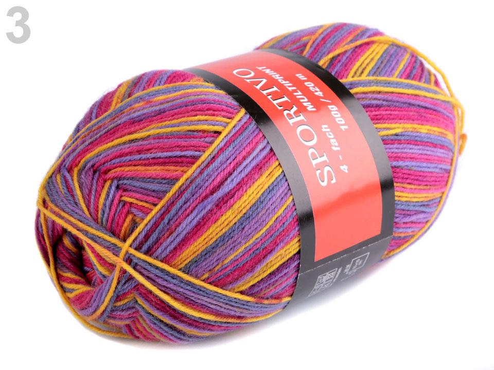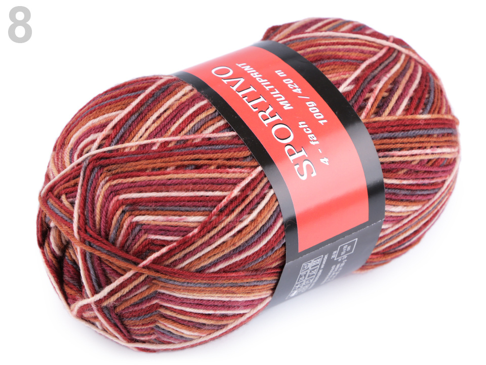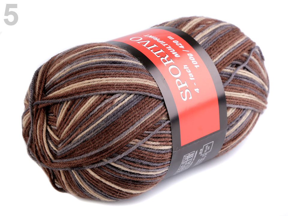 Použití: Příze se nejlépe hodí na pletení ponožek, u kterých vynikne její barevný efekt. Na 1 pár ponožek velikosti 40 - 42 je spotřeba 100 g.