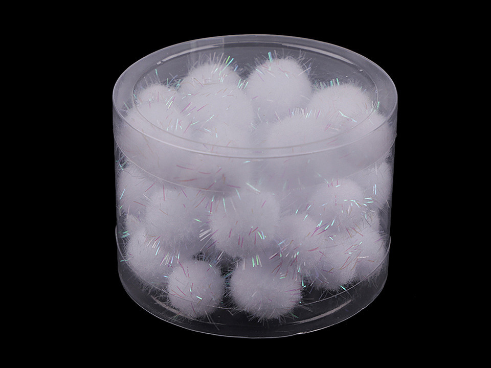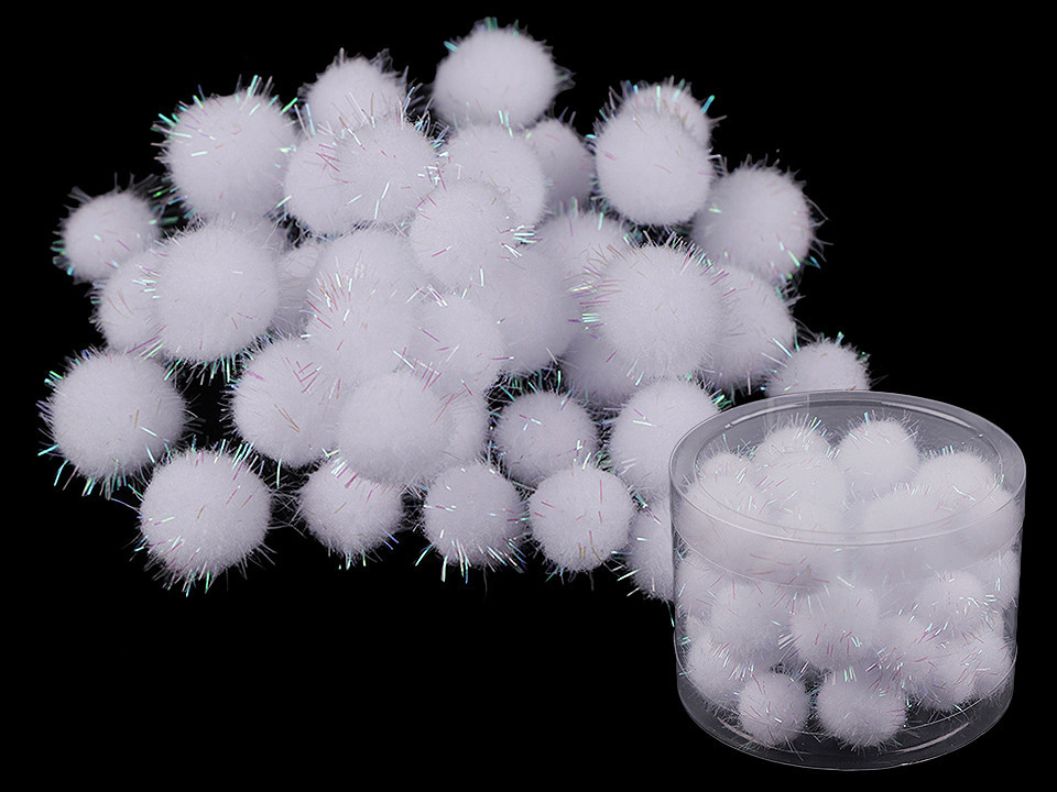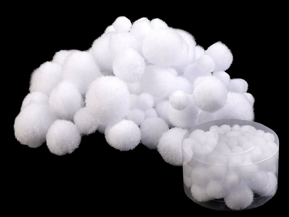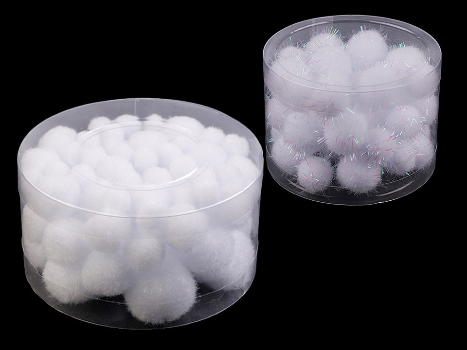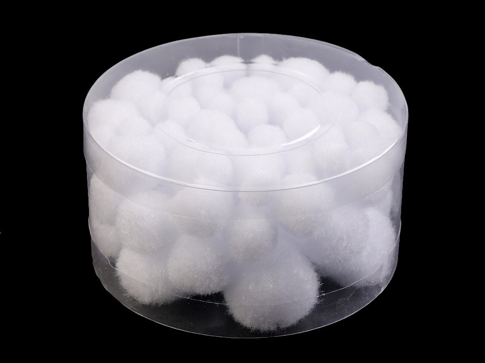 Balení č. 2: celkem 64 ks bambulek - 14 ks Ø25 mm, 20 ks Ø20 mm, 30 ks Ø10-13 mm