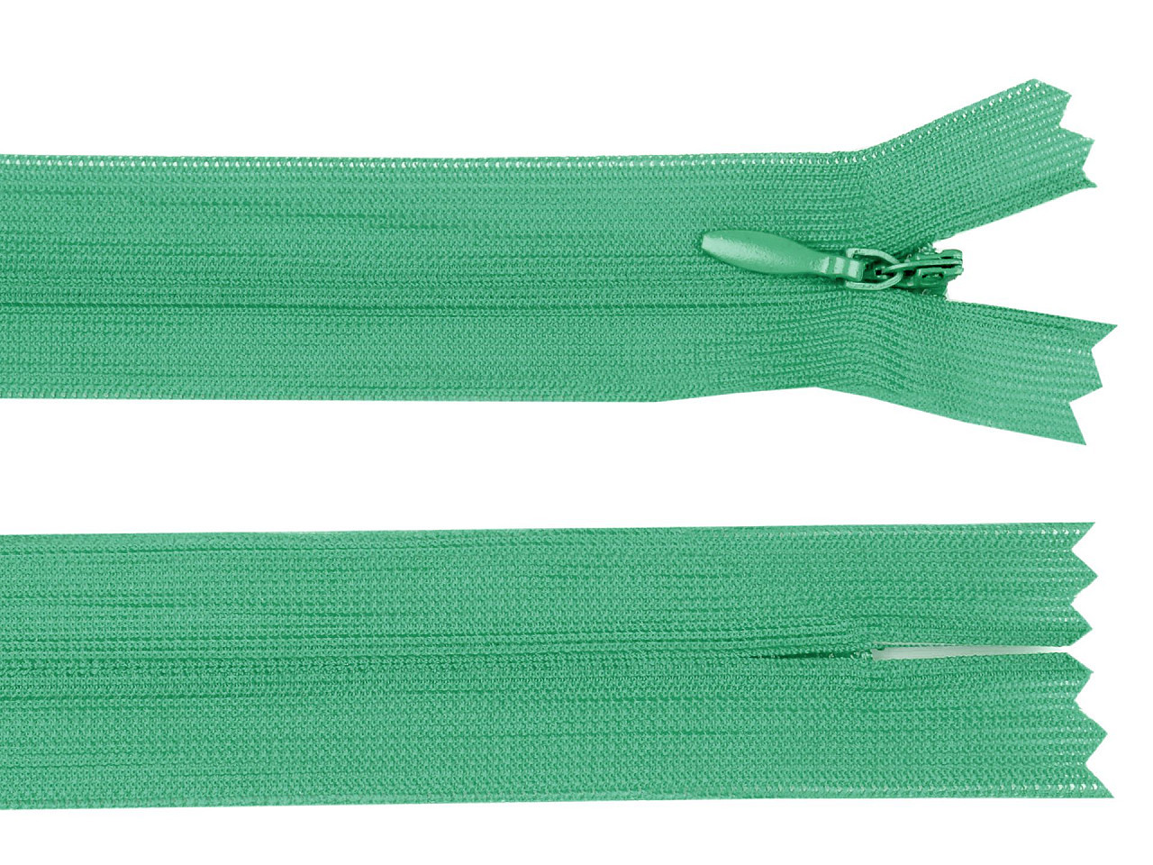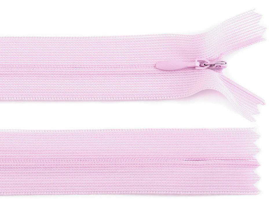 Spirálový zip je po našití prakticky neviditelný. Jeho spirála je zakrytá.