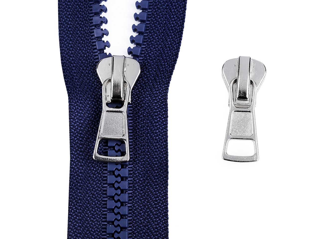 Kovový jezdec je určený ke kostěným zipům o šíři 8 mm v metráži, který u nás najdete pod kódem 118291.