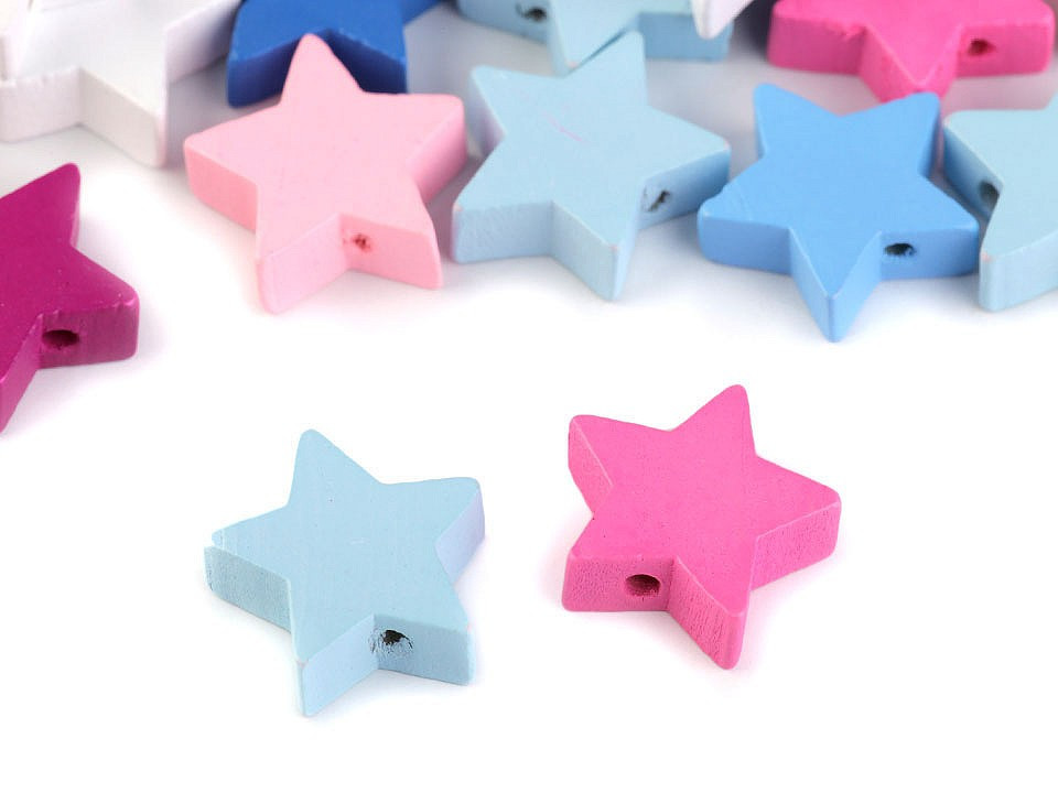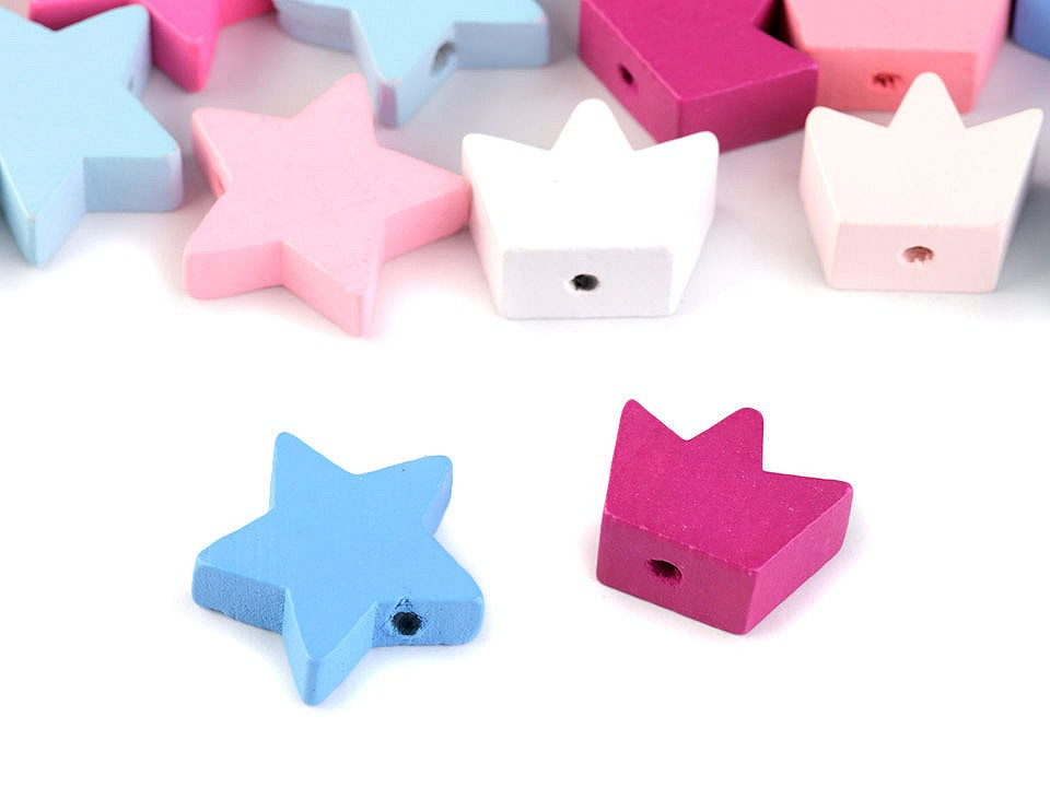 Mix barevných dřevěných korálků potěší nejen korálkářky, ale i děti. Jejich velikou výhodou je lehký materiál. Dají se skvěle kombinovat s dalšími dřevěnými korálky, s kulatými, s disky apod. Můžete je navlékat na lanko nebo pruženku či silon.