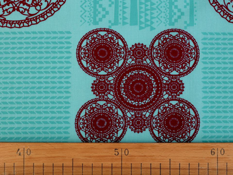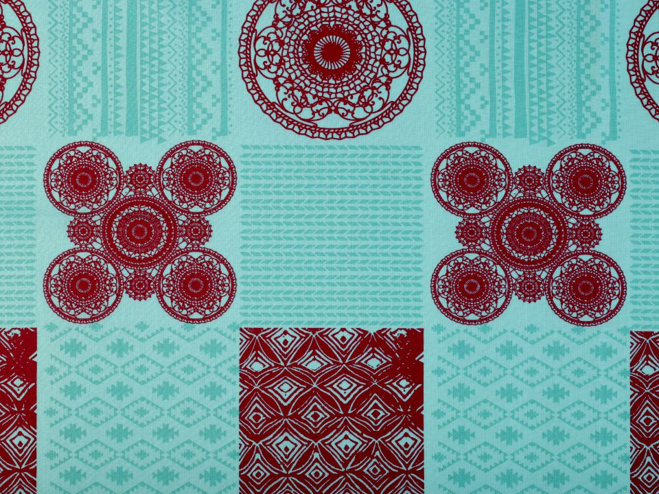 Bavlněná látka osloví všechny milovníky etno stylu. Zdobí ji potisk s mandalami.