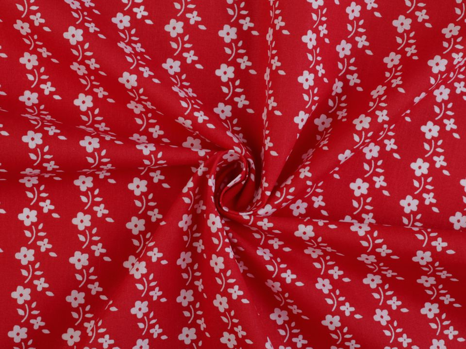 Bavlněnou látku zdobí potisk květin.