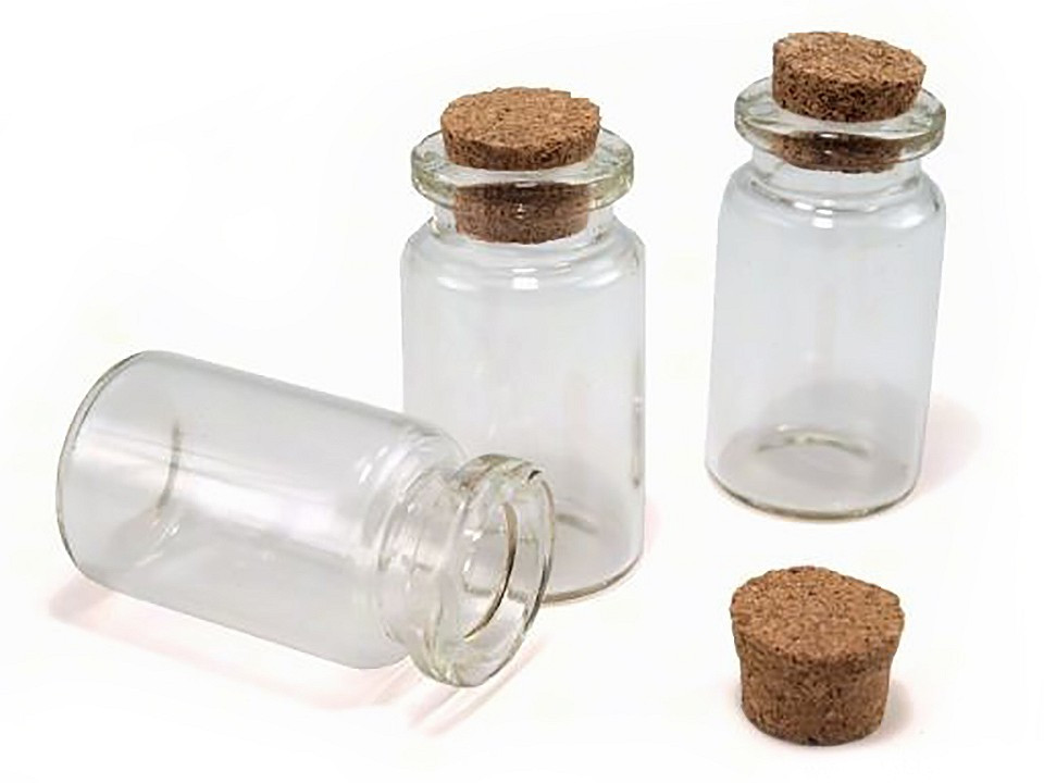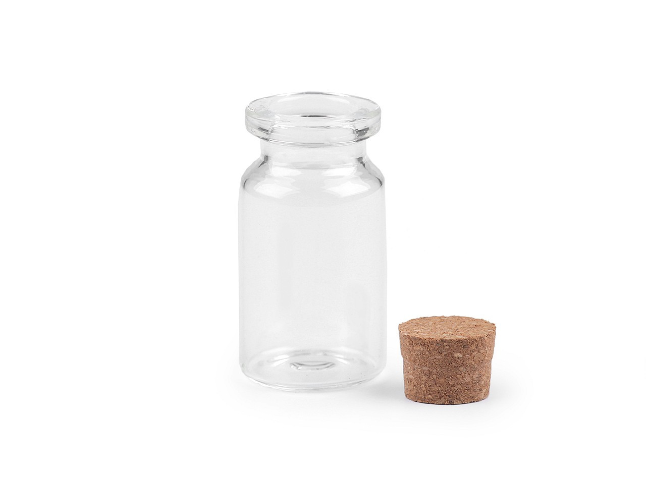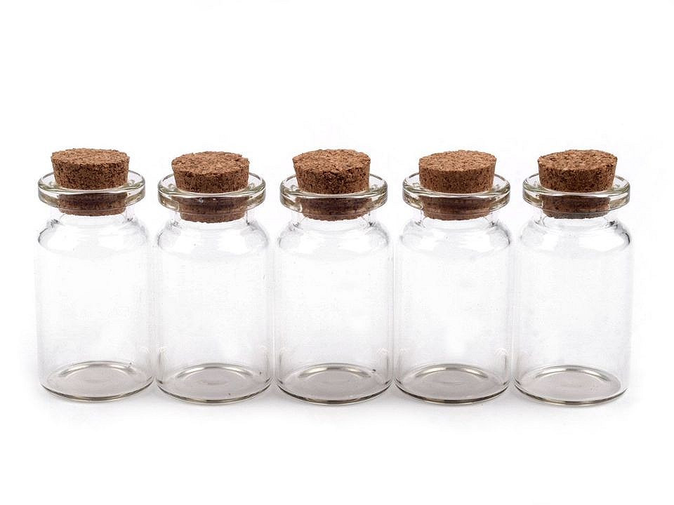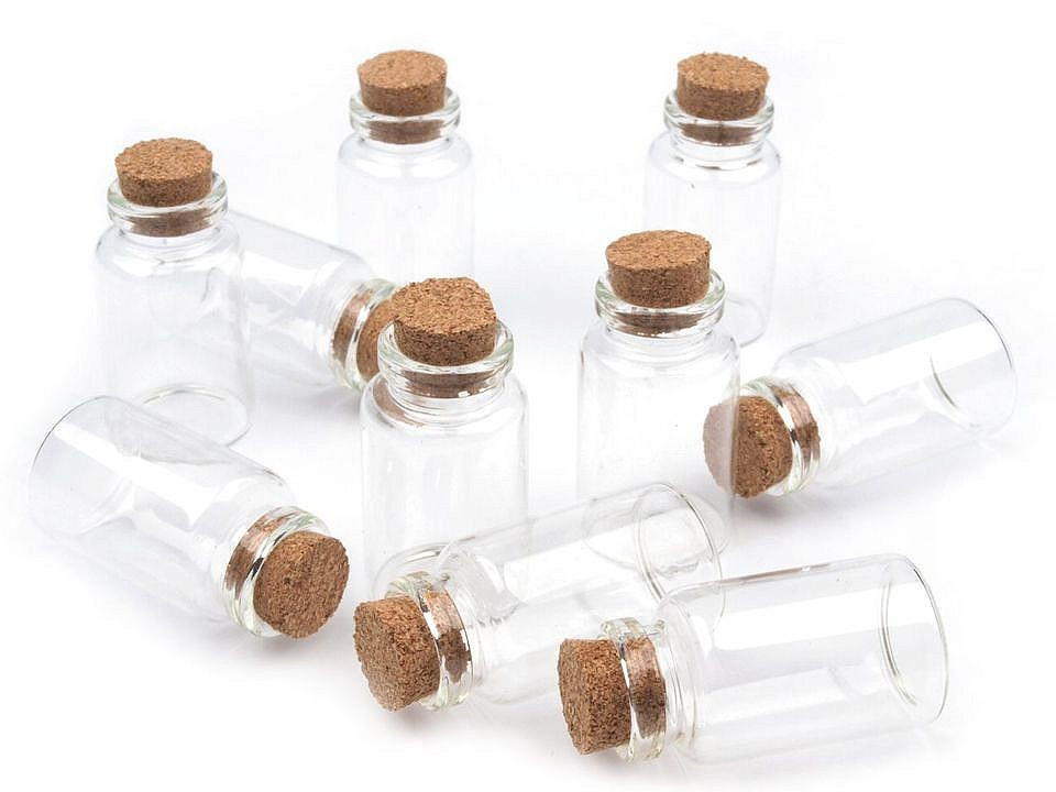 Velmi praktická skleněná lahvička vhodná na skladování drobných perliček jako je např. rocail. Díky průhlednosti dóziček jsou korálky v lahvičkách velmi přehledné. Korkový uzávěr pevně uzavře obsah dózy.