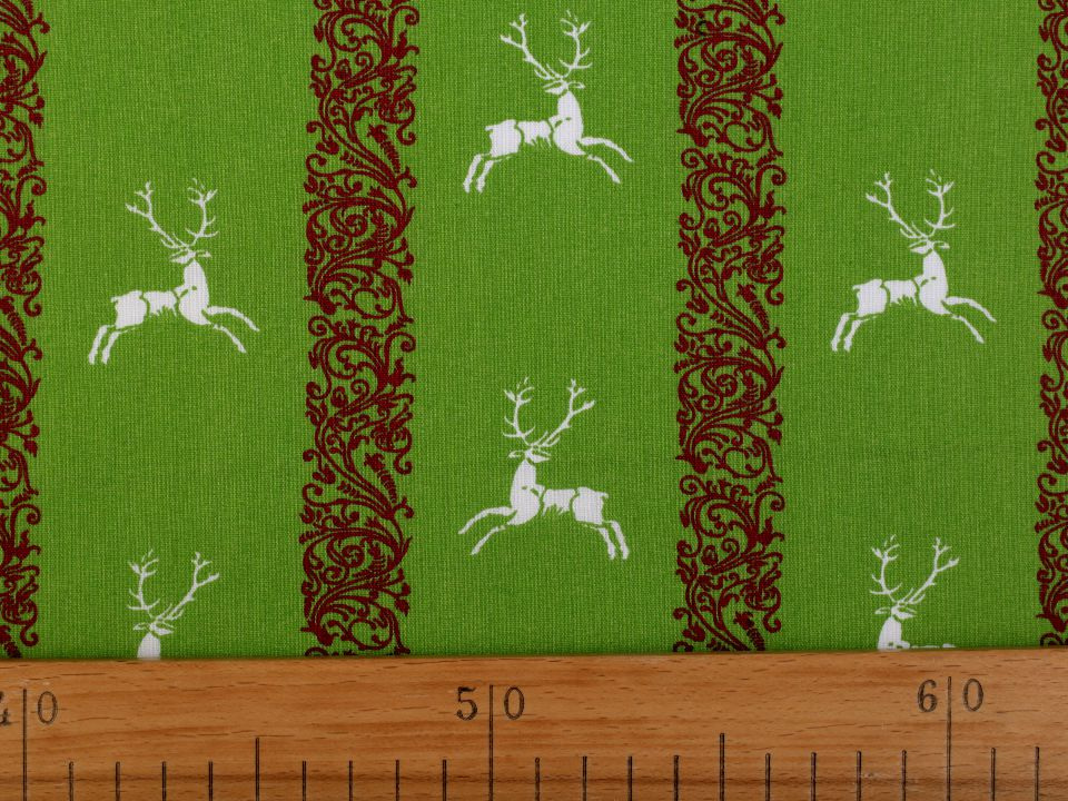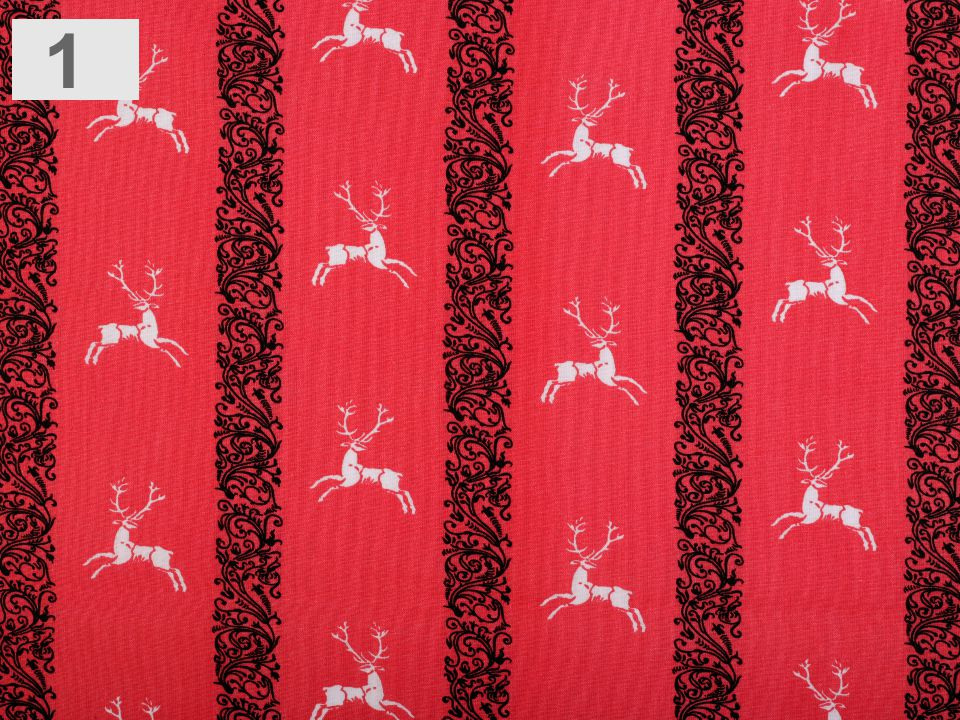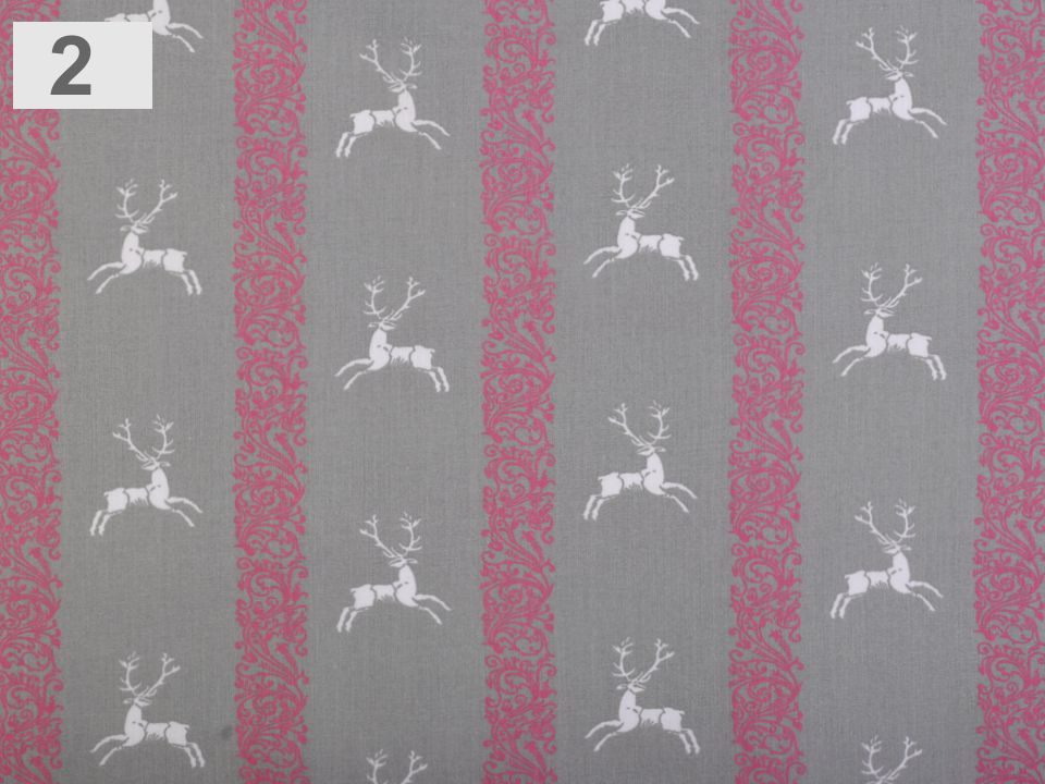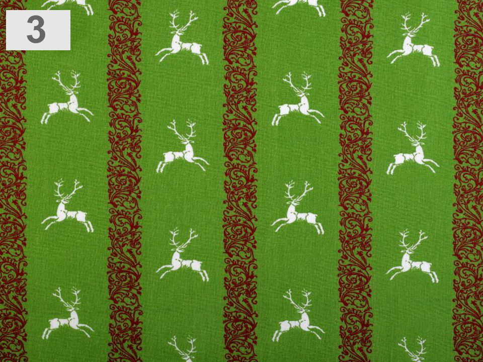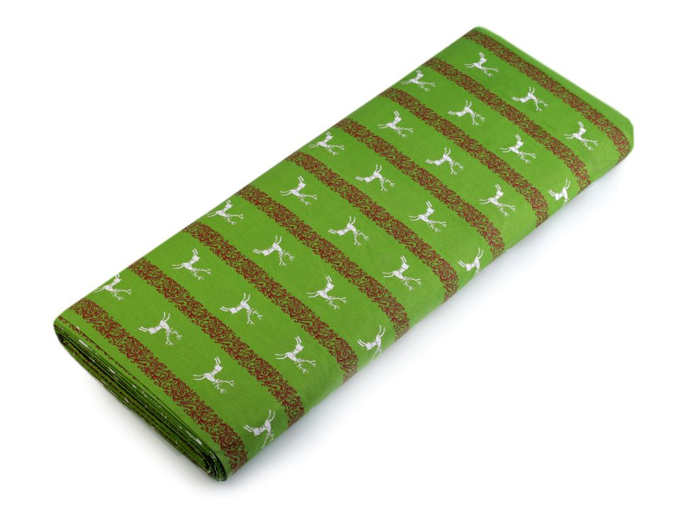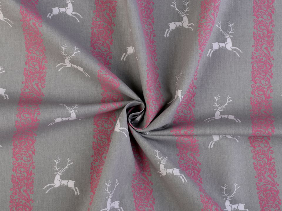 Bavlněná látka má potisk jelenů či sobů s ornamenty