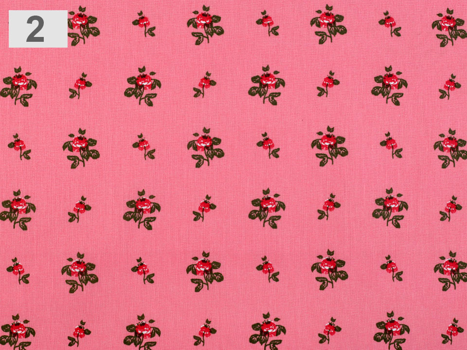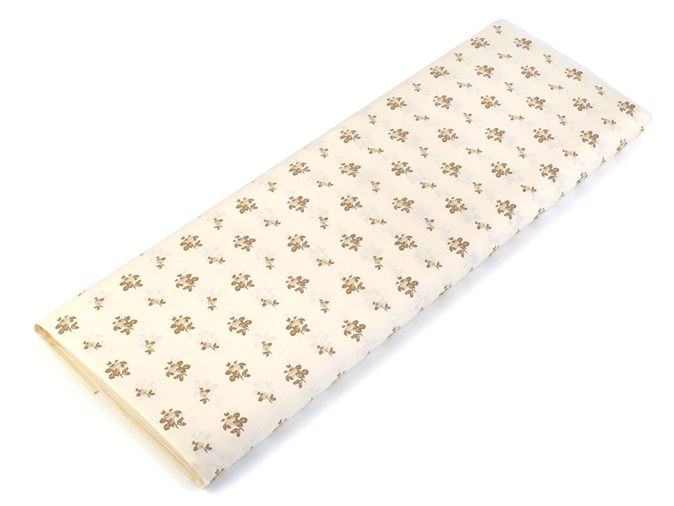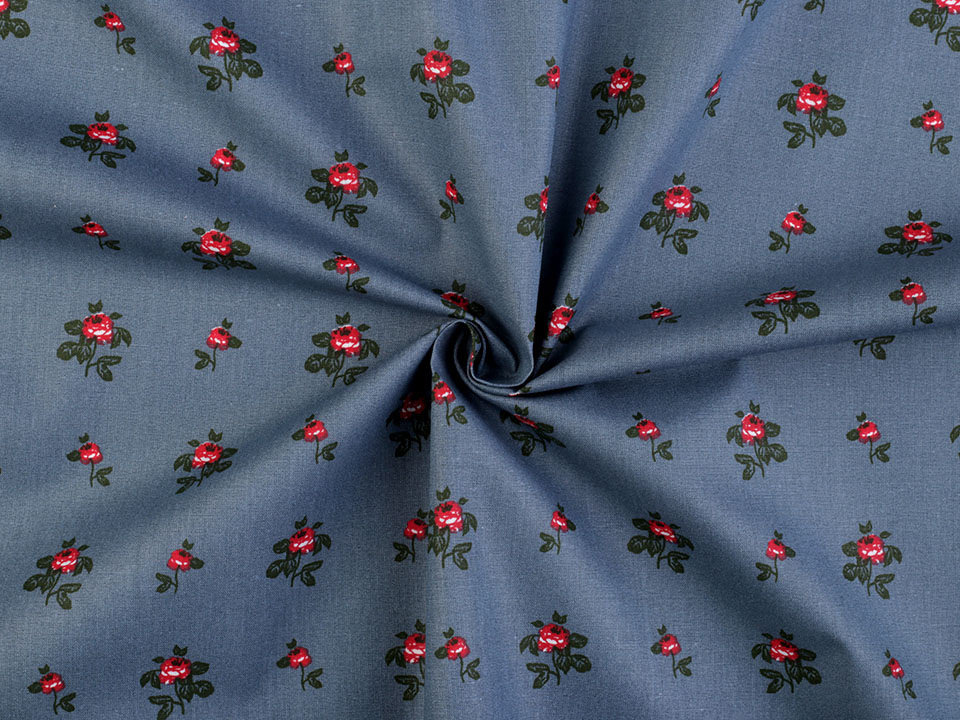 Bavlněná látka je zdobena motivem s růžemi. Látka je příjemná na dotek.