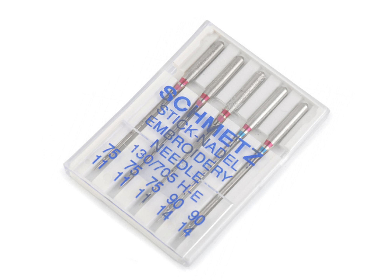 Kvalitní německé jehly SCHMETZ jsou určeny pro většinu domácích šicích strojů. Pro lepší orientaci jehel pro domácí šicí stroje jsou jehly SCHMETZ barevně označeny. Vrchní barva označuje typ jehly a spodní barva značí velikost.