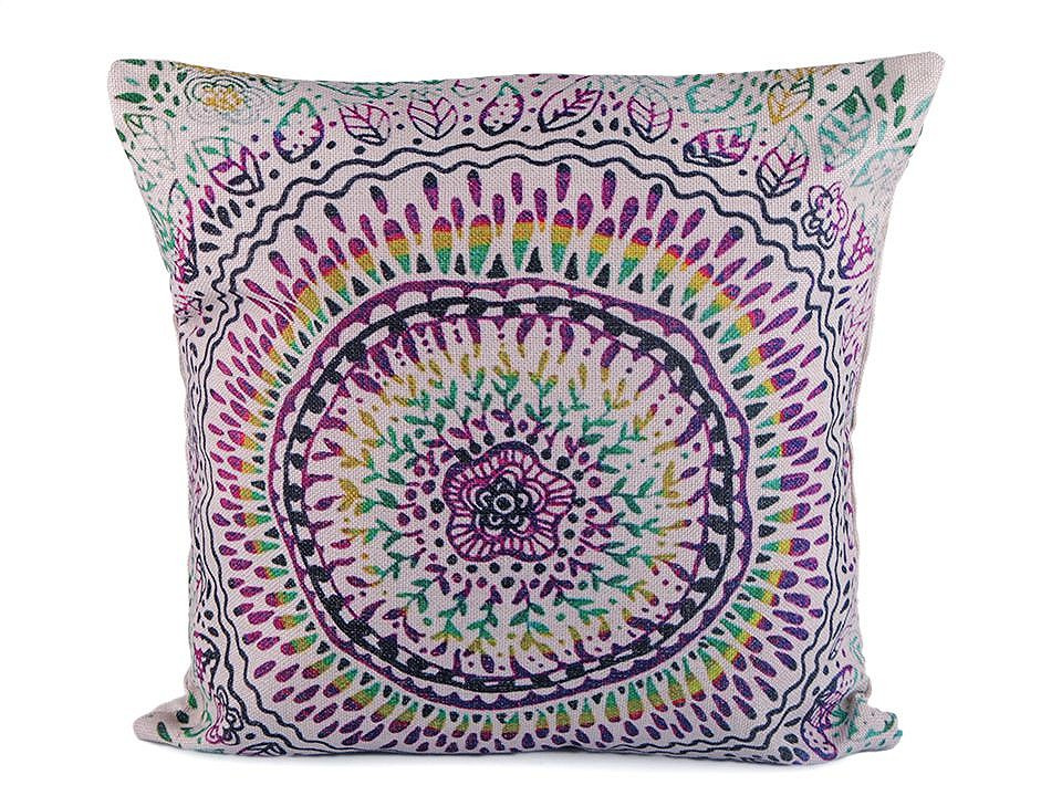Povlak na polštář ocení všichni milovníci etno a boho stylu. Zdobí ho potisk mandaly, který je jednostranný. Zapíná se na zip.