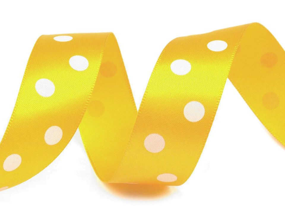 Saténová stuha s puntíky šíře 22 mm - 3 Blazing Yellow