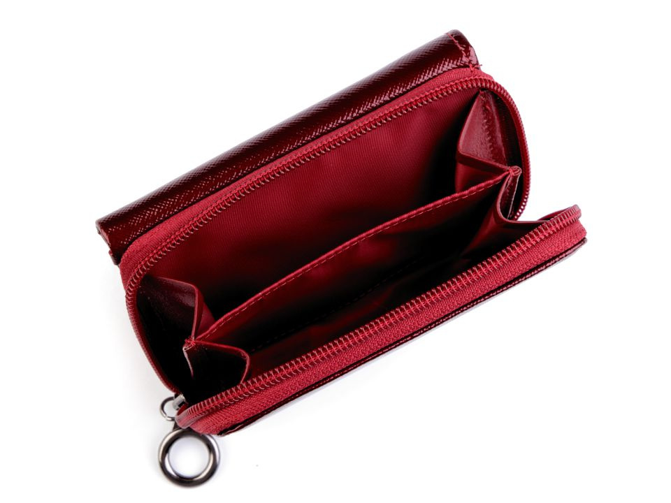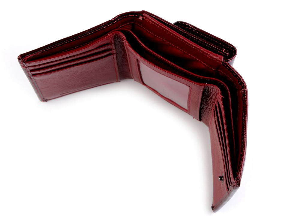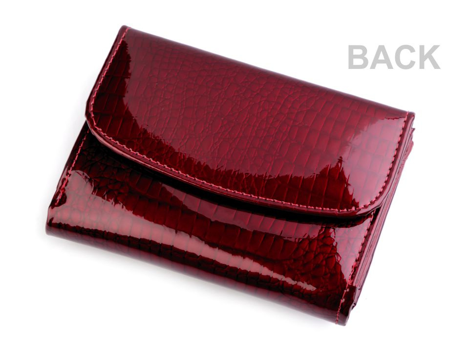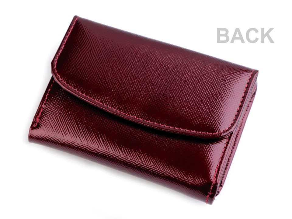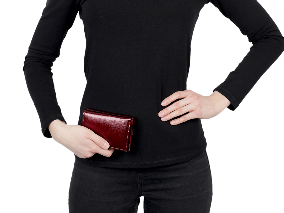 Peněženka č.1 a 2 má uzavírání na patent, 8 přihrádek na kreditní karty, 1 průhlednou přihrádku na doklady a 2 přihrádky na bankovky. Mincovník z druhé strany se také zapíná na klopu s patentkou. Rozměry: 8 x 11,5 x 3,5 cm.