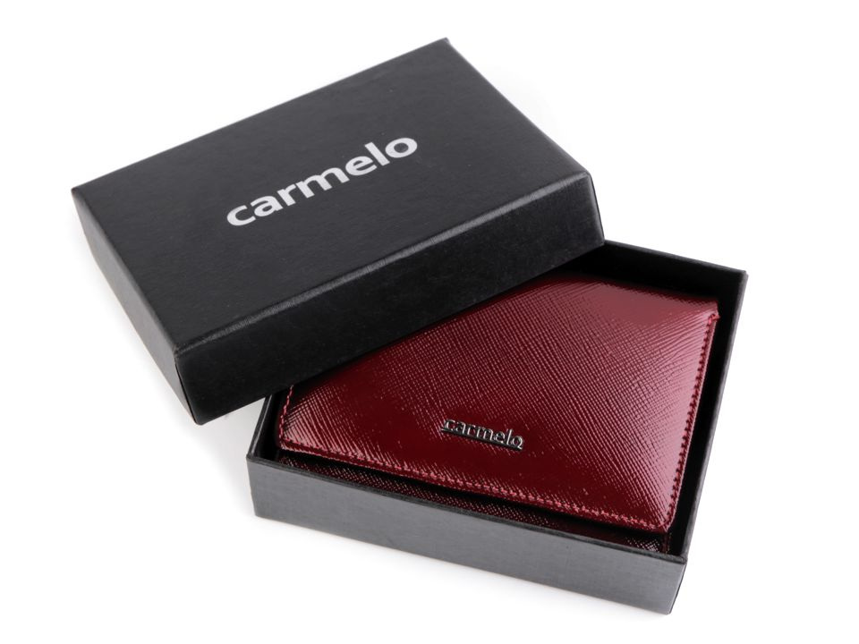 Luxusní dámská peněženka značky Carmelo z pravé kůže má velice kvalitní provedení a chytrý design. Je zabalená v dárkové krabičce se stříbrným potiskem.