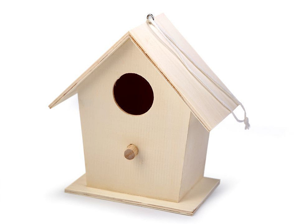 Dřevěná ptačí budka ozdobí vaši terasu, balkón, kuchyň apod. Díky poutku ji kamkoli pověsíte. Můžete ji použít jako samostatnou dekoraci nebo dozdobit technikou scrapbooking či decoupage. Dá se domalovat akrylovými či temperovými barvami, popisovači, glitrovými lepidly, aj.