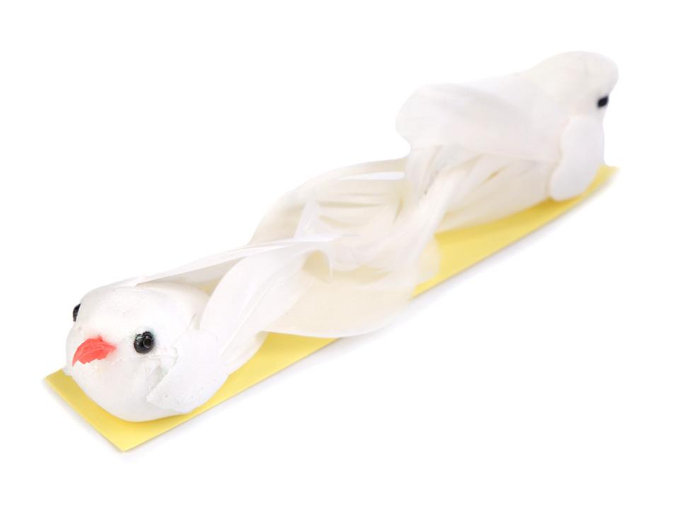 Dekorační ptáček působí romanticky a vynikne hlavně na svatebních ozdobách. Můžete ho nalepit na věnce, krabičky, dárky apod. Ptáček nemá klip.