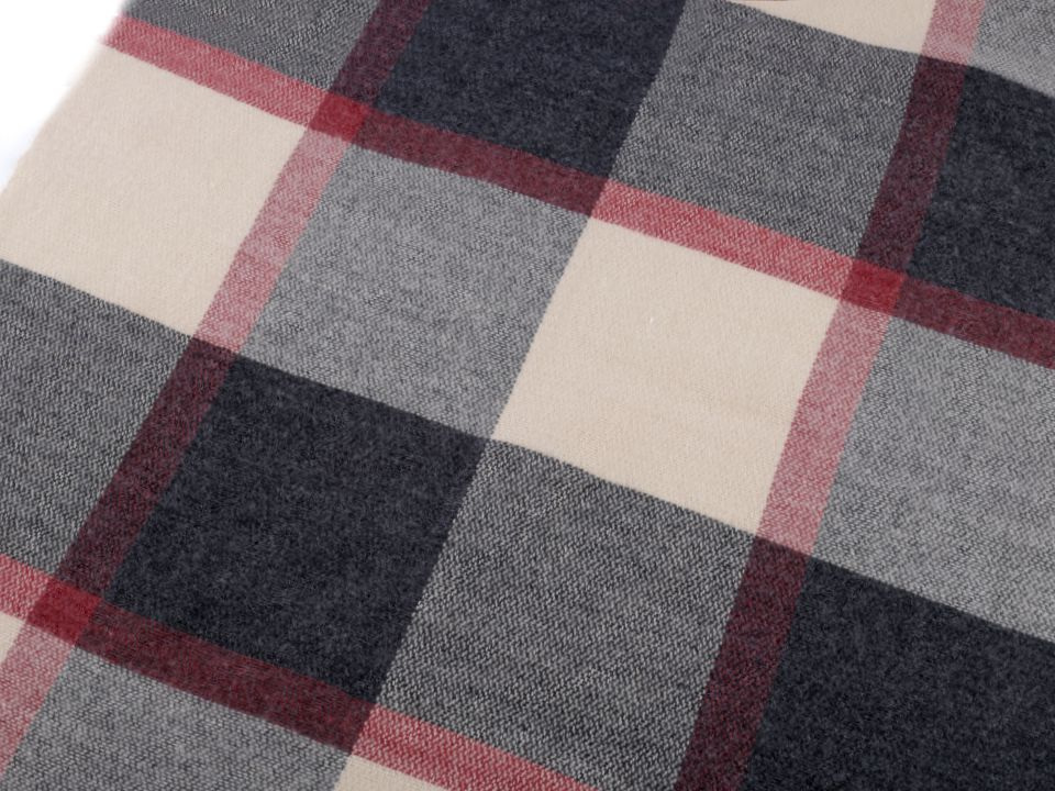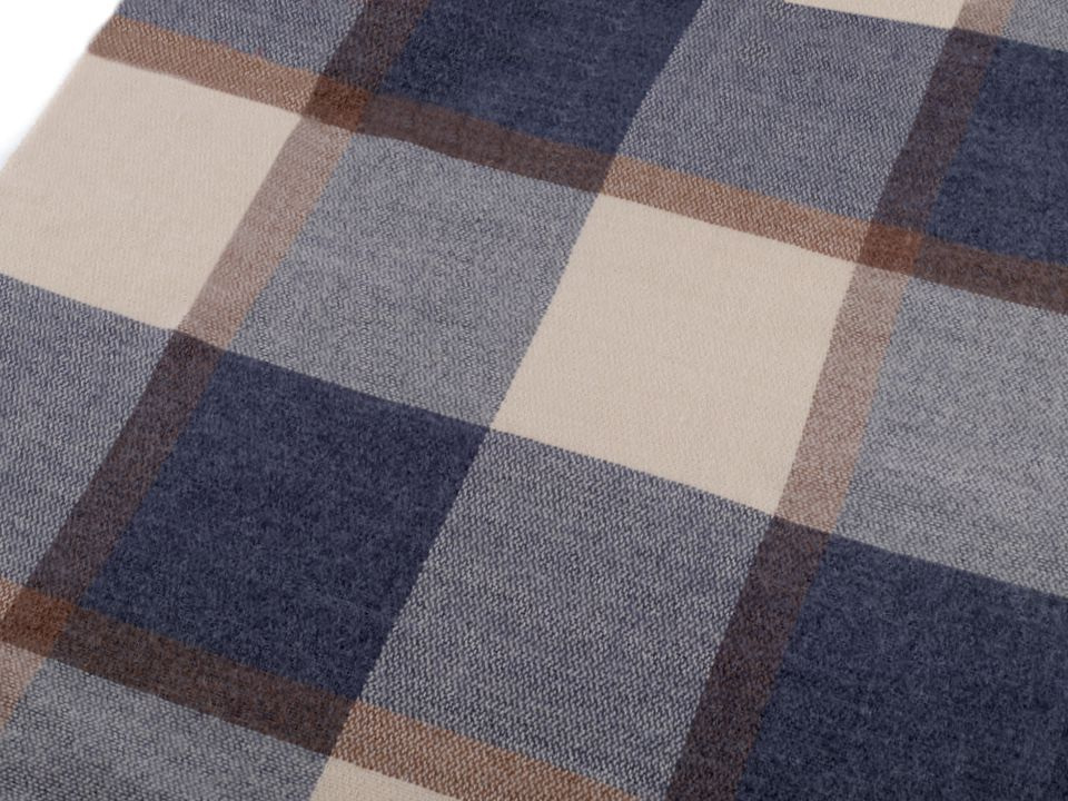 Šála s károvaným vzorem je oblíbená u všech věkových generací. Je vyrobena z příjemného hřejivého materiálu. Šálu můžete nosit ke kabátu, bundě či svetru. Na koncích je zakončena kratšími třásněmi.