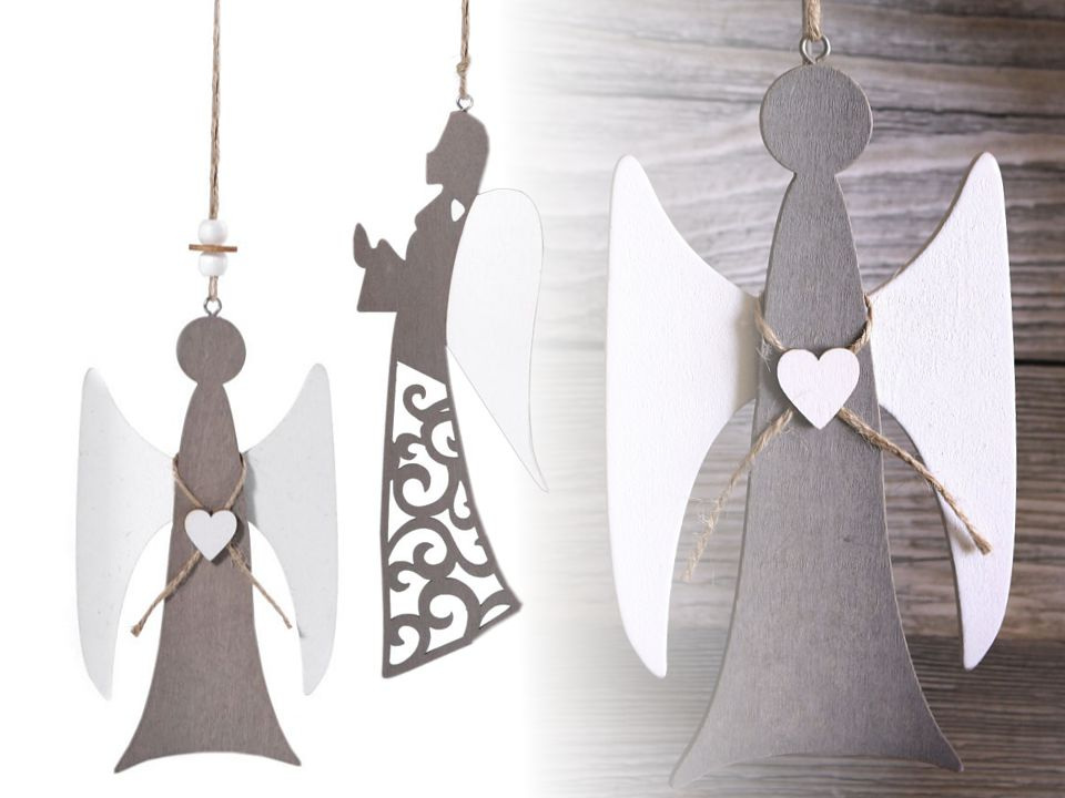 Dřevění andělé zútulní váš domov. Mají poutko z jutové šňůry na zavěšení.