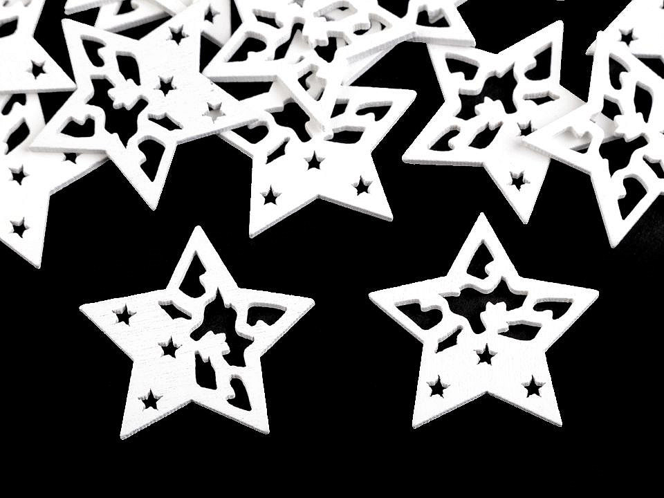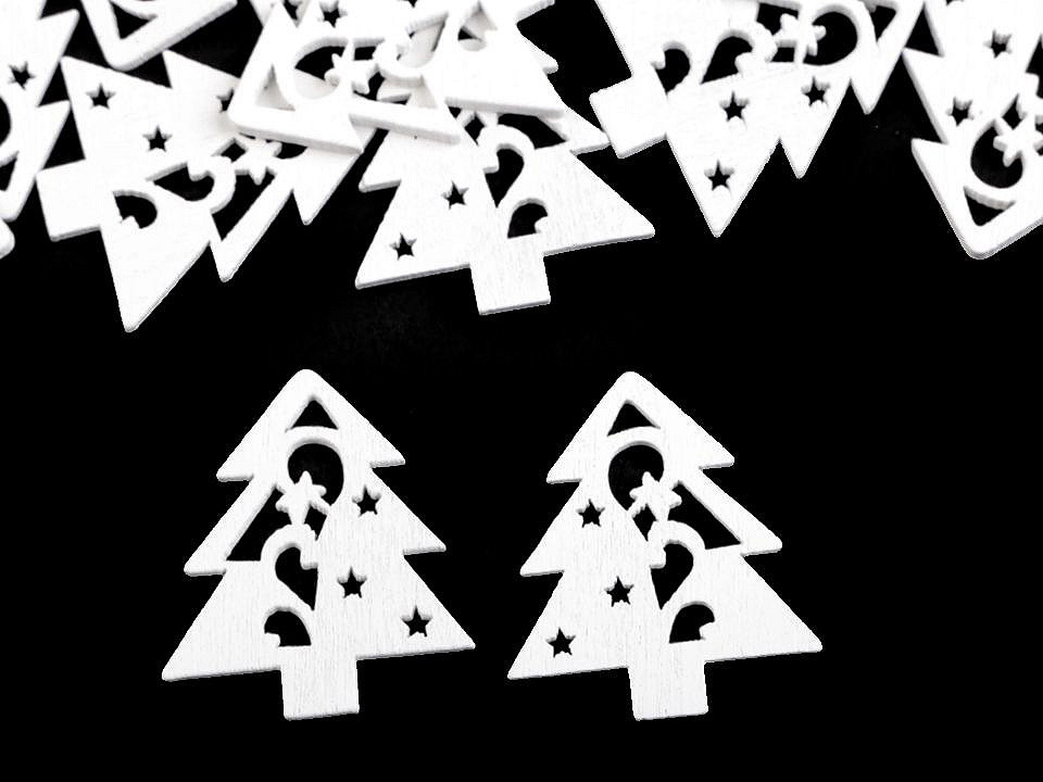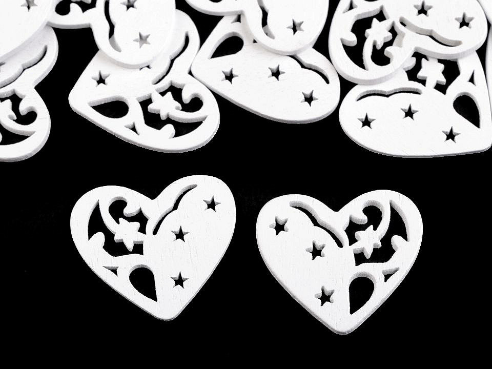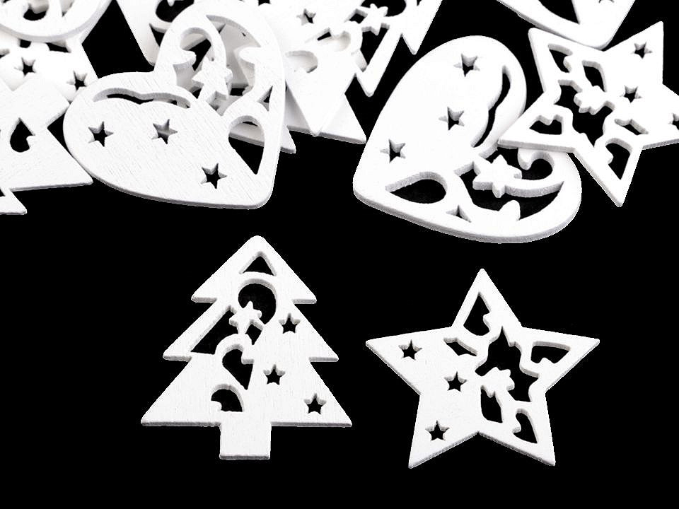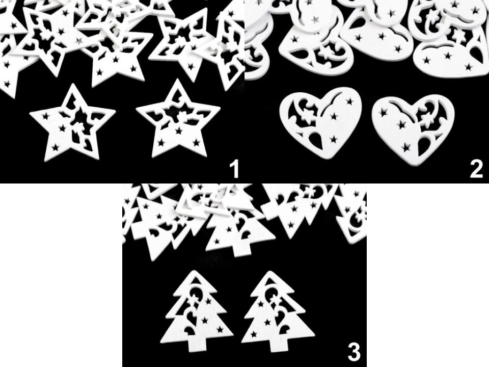 Dřevěné dekorace ve tvaru stromku, hvězdy a srdce využijete k aranžování svátečního stolu nebo k ozdobení věnců či dárků. Mají v sobě efektní výřezy.
