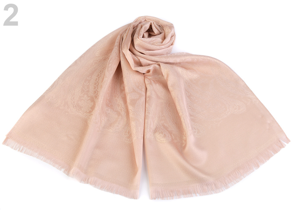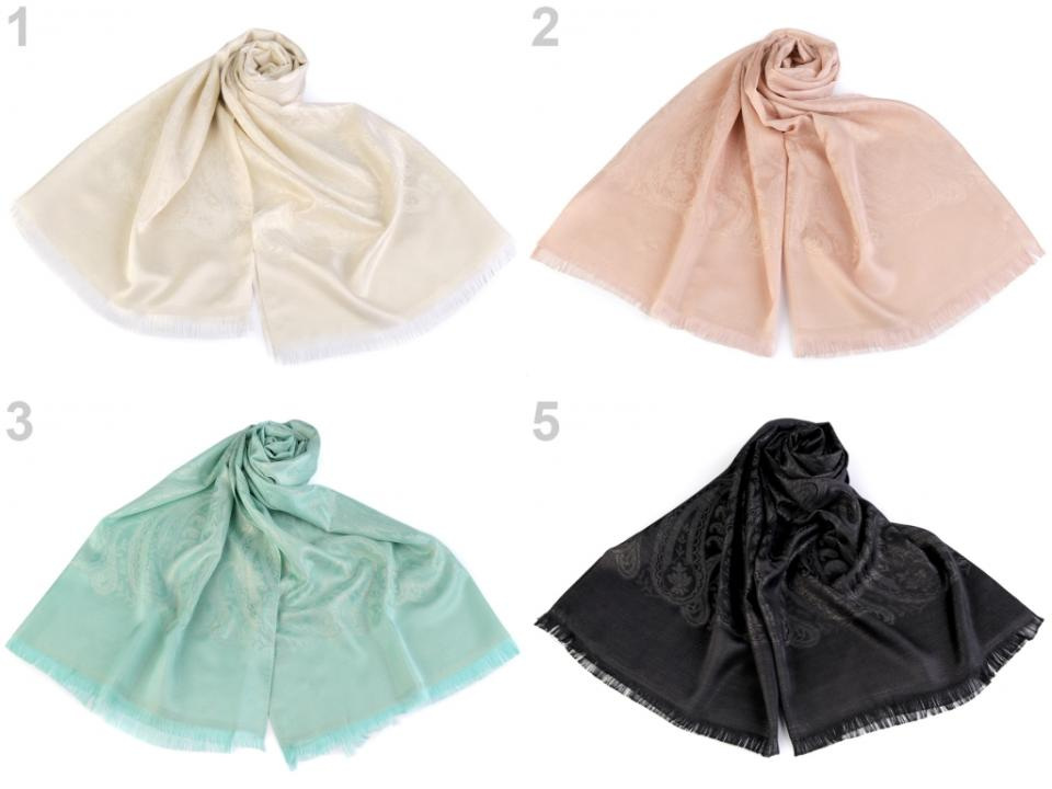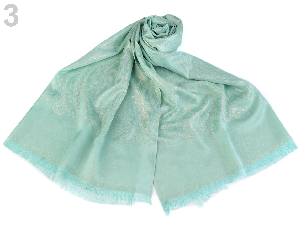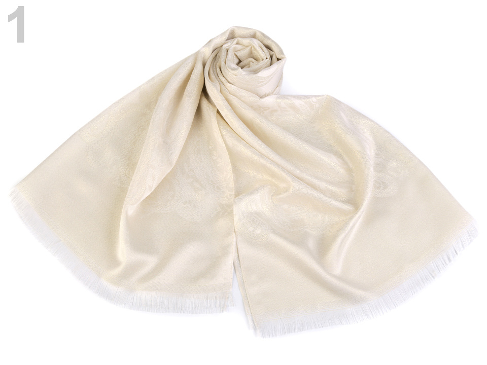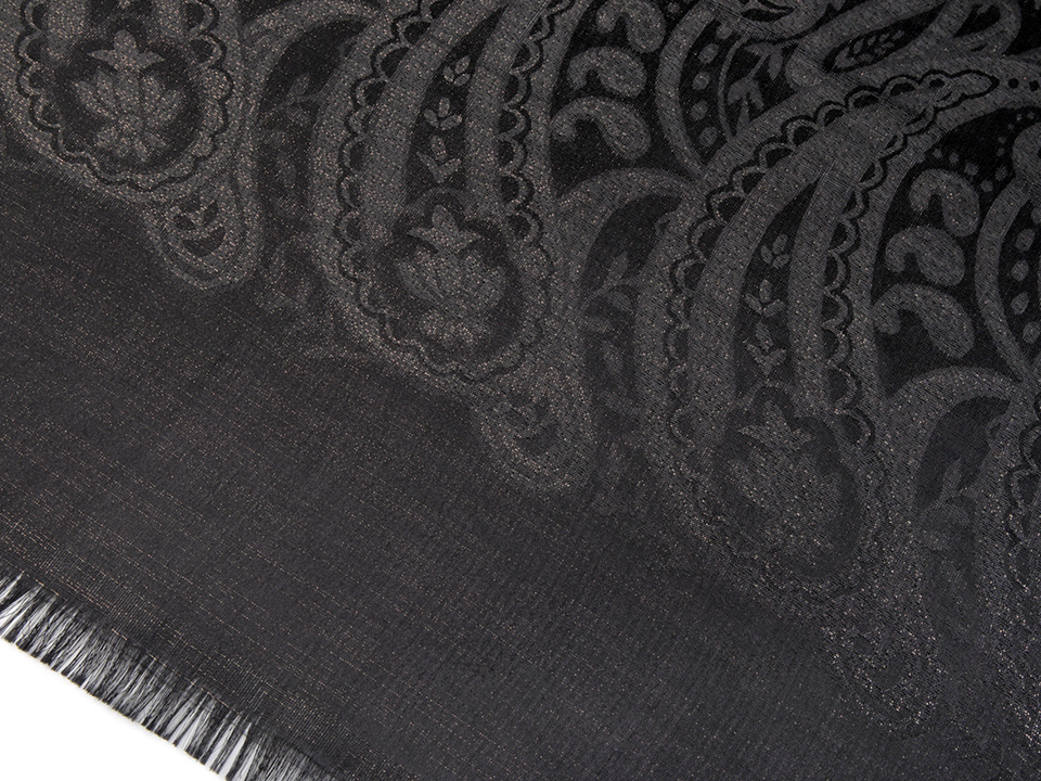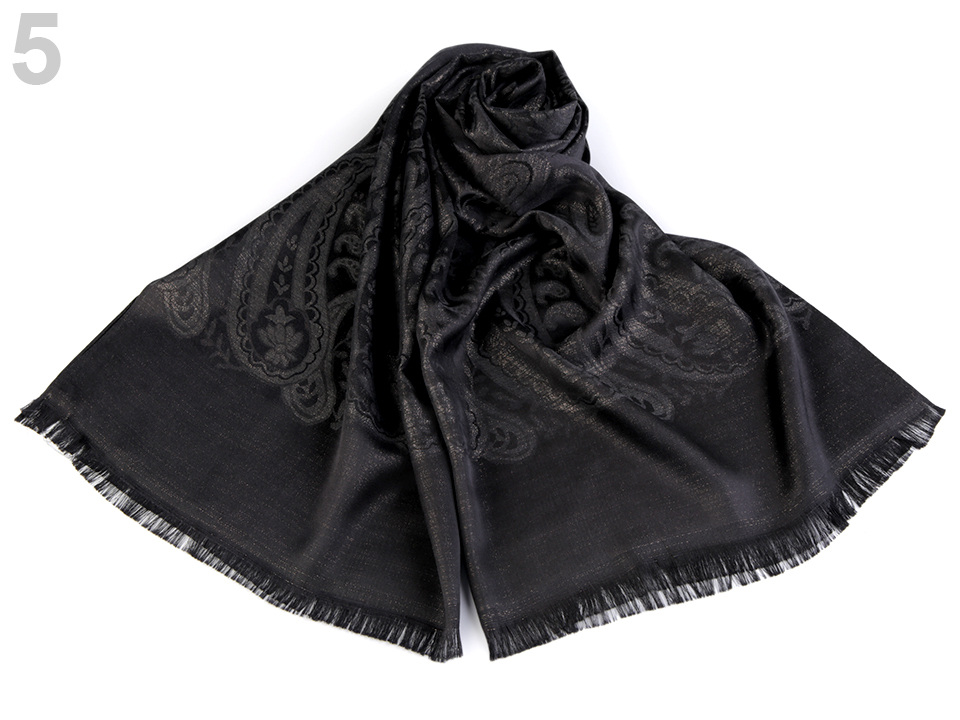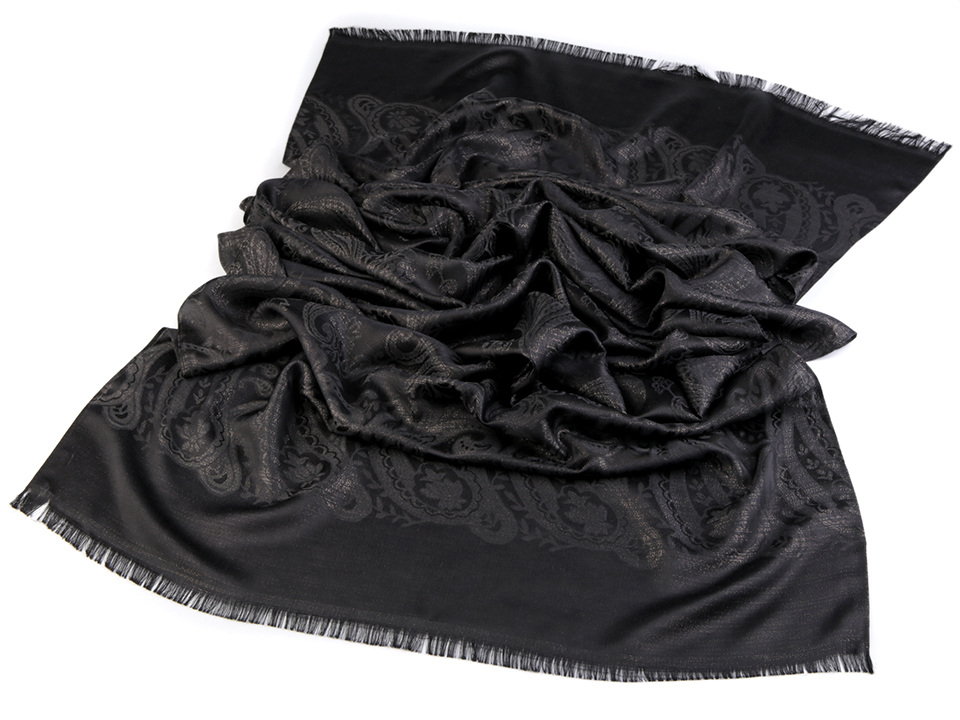 Dámský šátek s lurexem zdobí jemné ornamenty. Hodí se ke společenským událostem i na běžné nošení. Pyšní se elegantním vzhledem, který váš outfit pozdvihne o třídu výš.