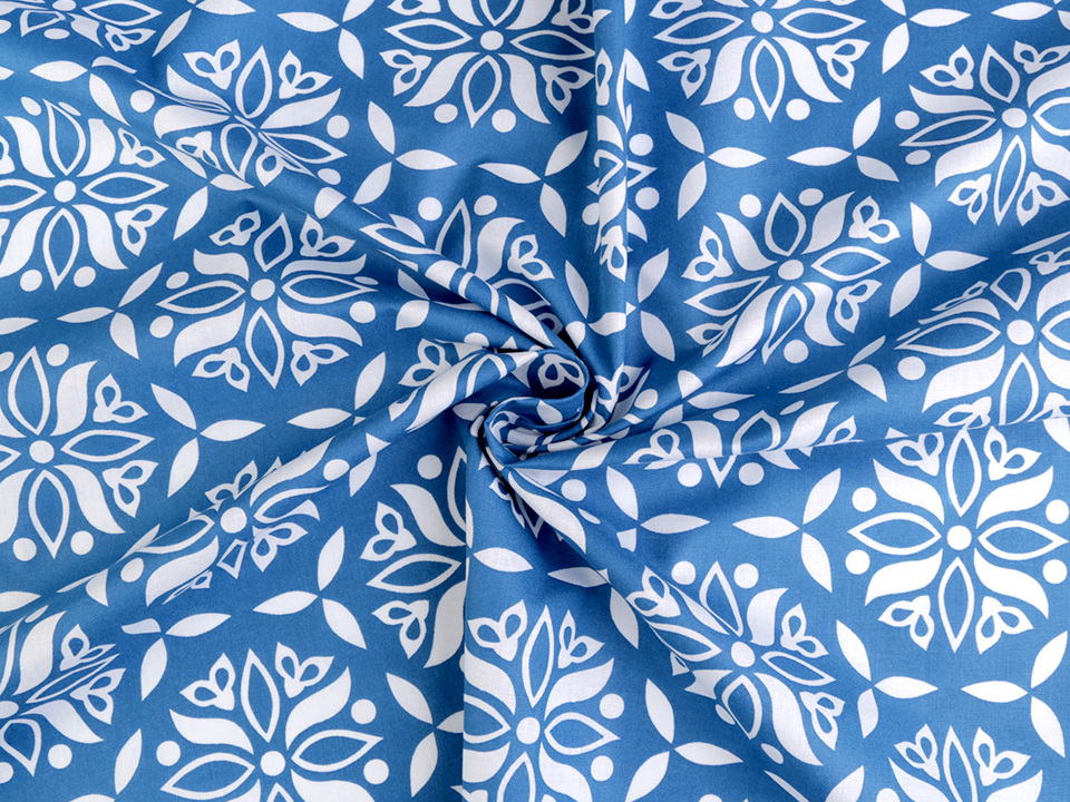 Měkčenou bavlněnou látku zdobí potisk ornamentů. Je vhodná pro děti do 3 let, má certifikát.