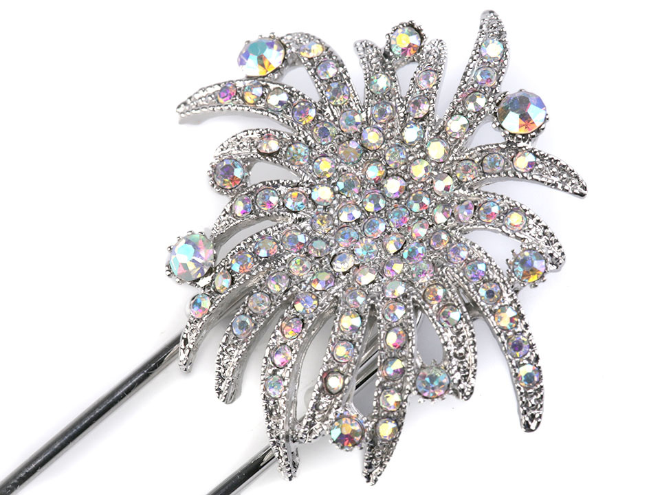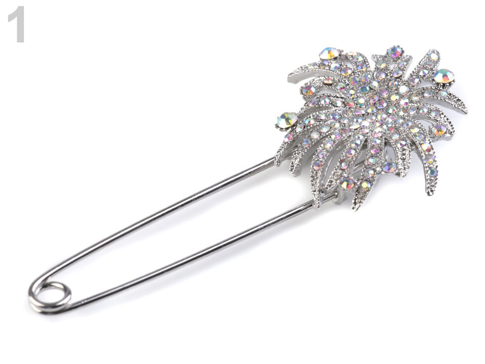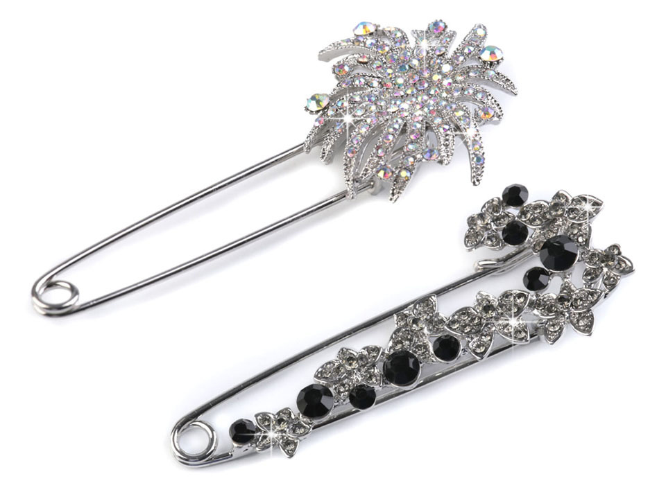Brož s broušenými kamínky na spínacím špendlíku se krásně třpytí. Tento elegantní kousek můžete využít na běžné nošení i na společenské události - návštěvy divadel, oslavy apod.