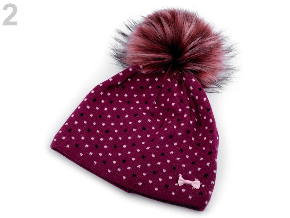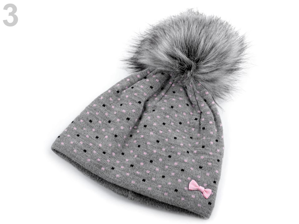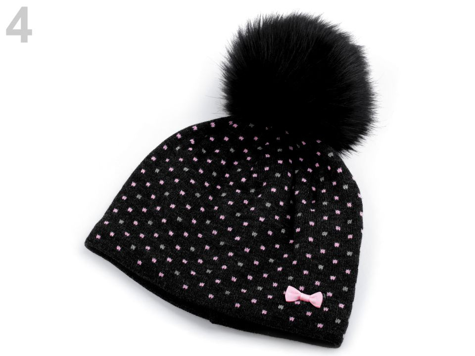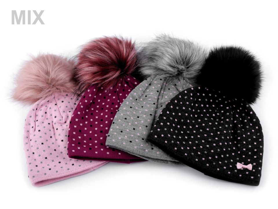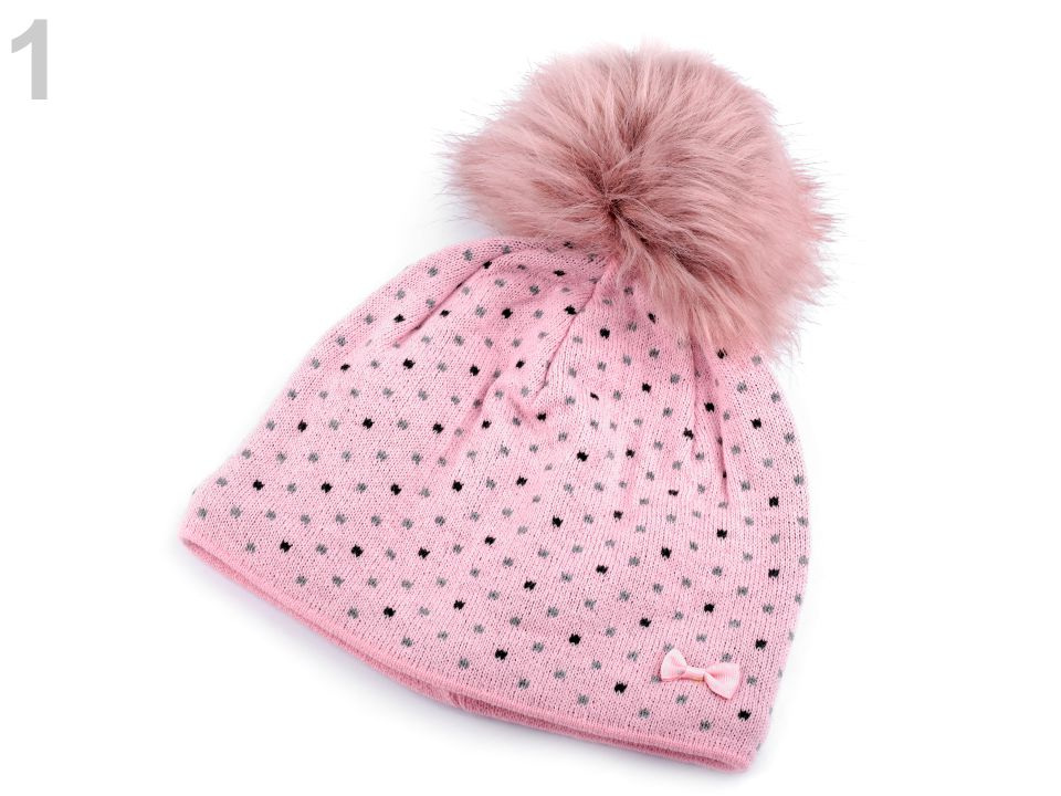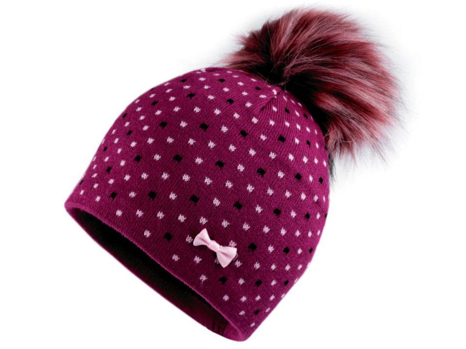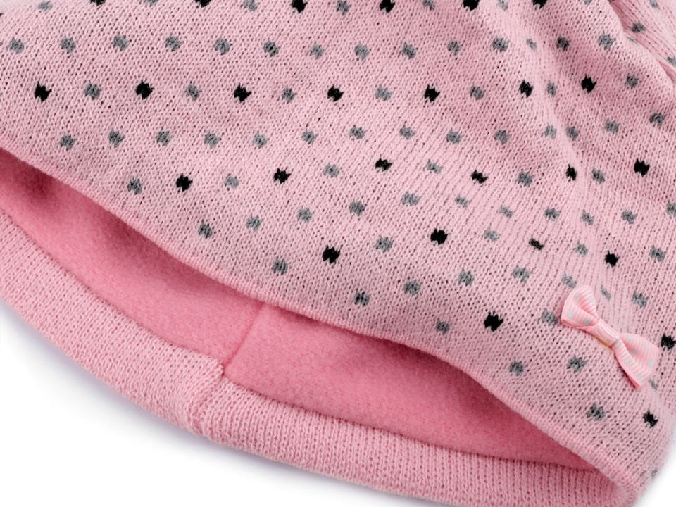 Puntíkovaná zimní čepice s mašličkou sluší každé dívce. Nahoře je ozdobená velkou bambulí z umělé kožešiny. Úplet je měkký, příjemný na dotek. Čepice bude hřát celou zimu, neprofoukne, je podšitá pásem teplého fleecu.