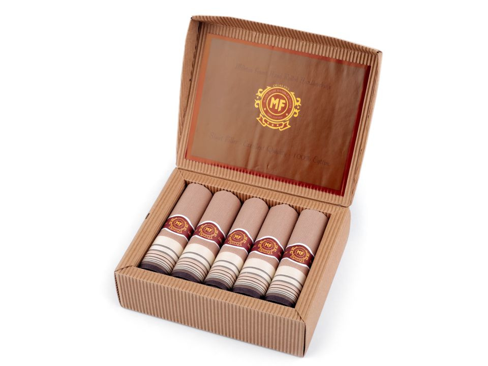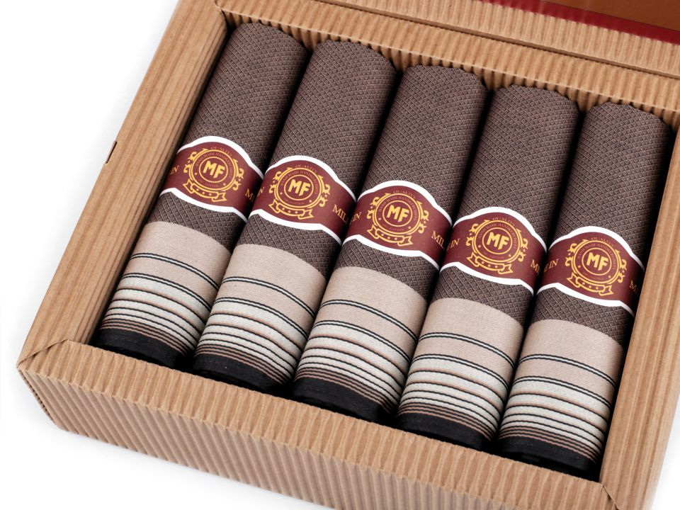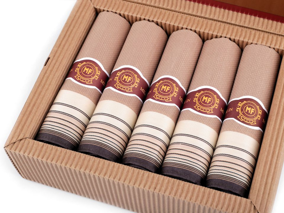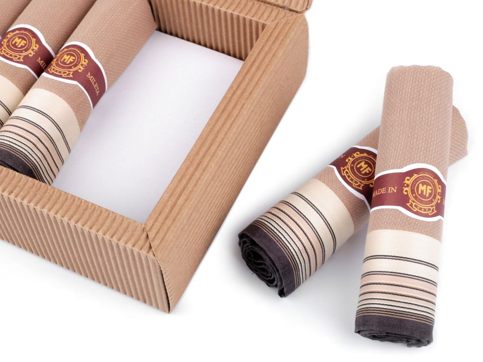 Elegantní pánské kapesníky jsou vhodným dárkem pro vaše blízké. Jsou zabalené v dárkové krabičce z vlnité lepenky přírodního vzhledu. Mohou vám posloužit jako hodnotný dárek.